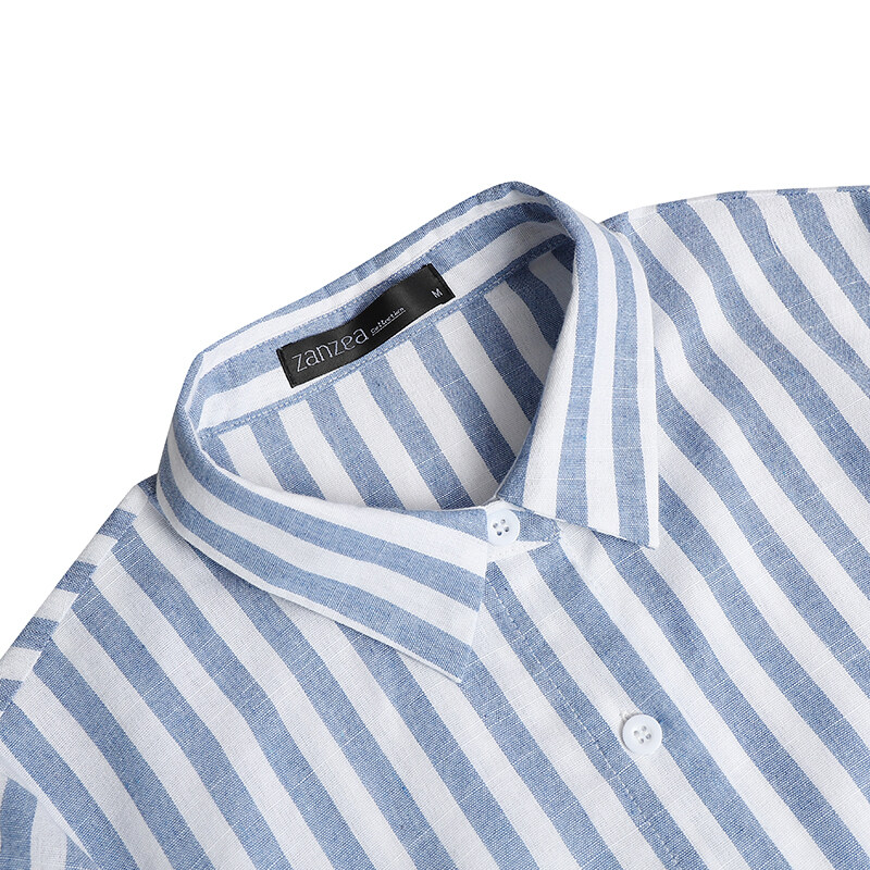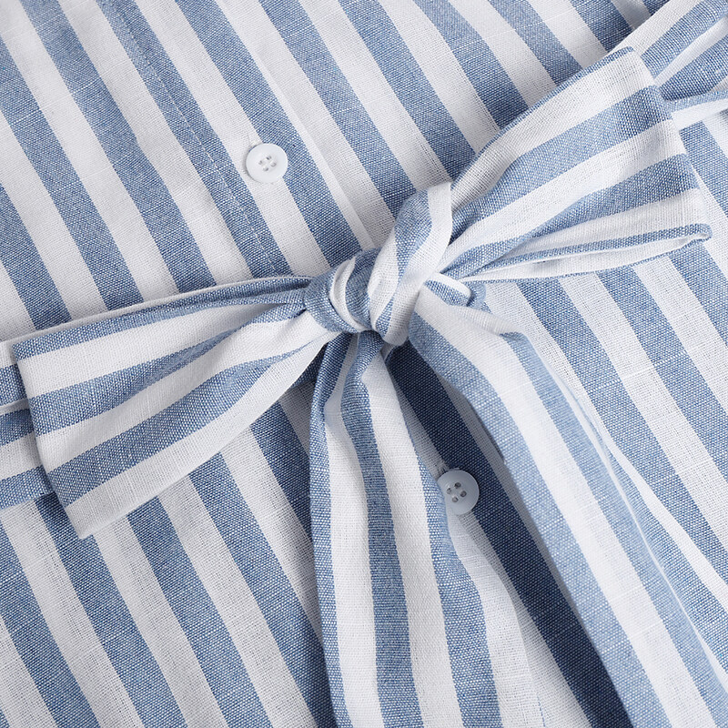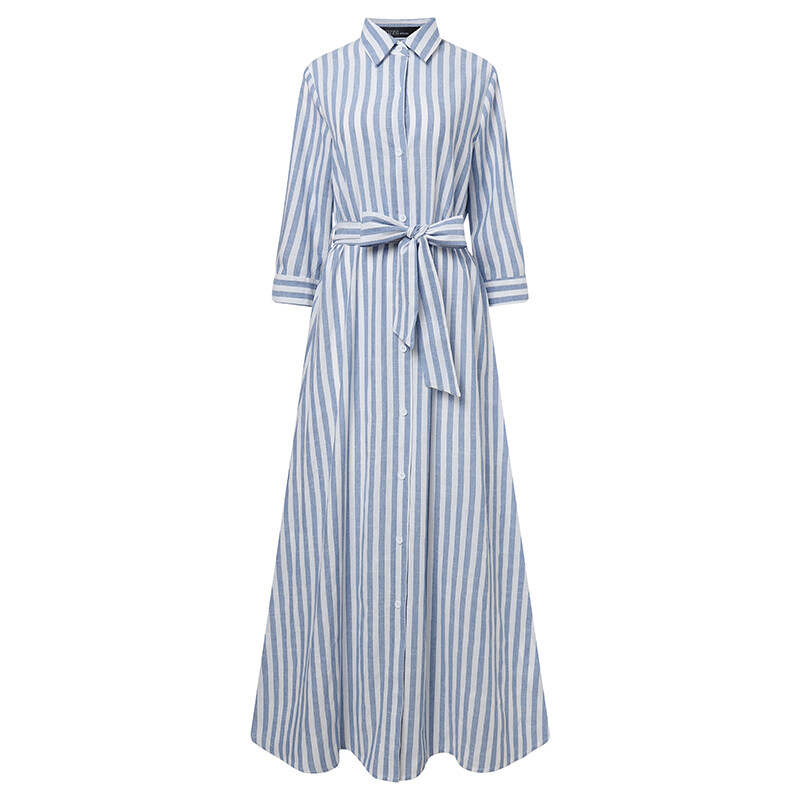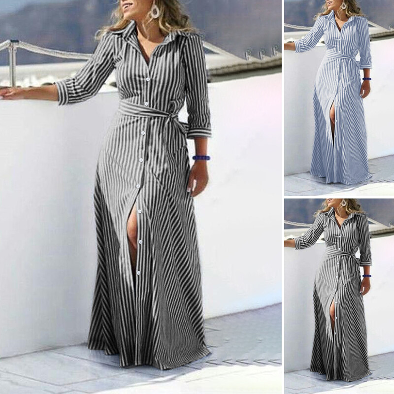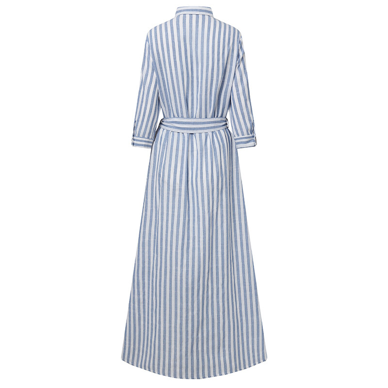 ZANZEA Women Summer Belted Striped Shirt Dress Collared Button Down Maxi Dress