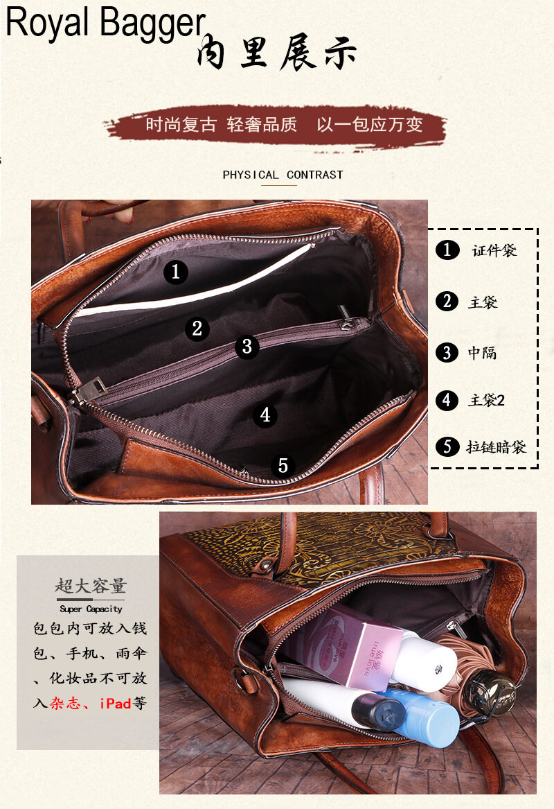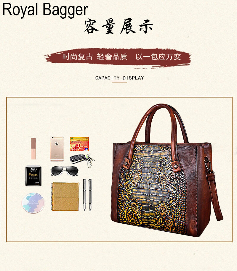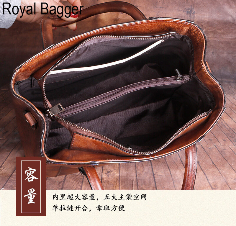 Royal Bagger New Fashion Top-Handle Bag For Women Genuine Cow Leather Elegant Retro Shoulder Bag Multifunction Ladies Girl Crossbody