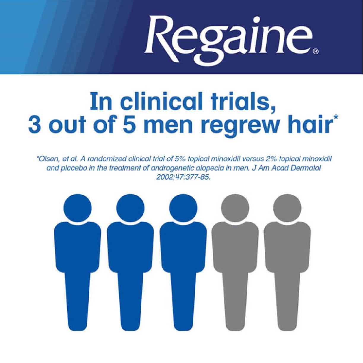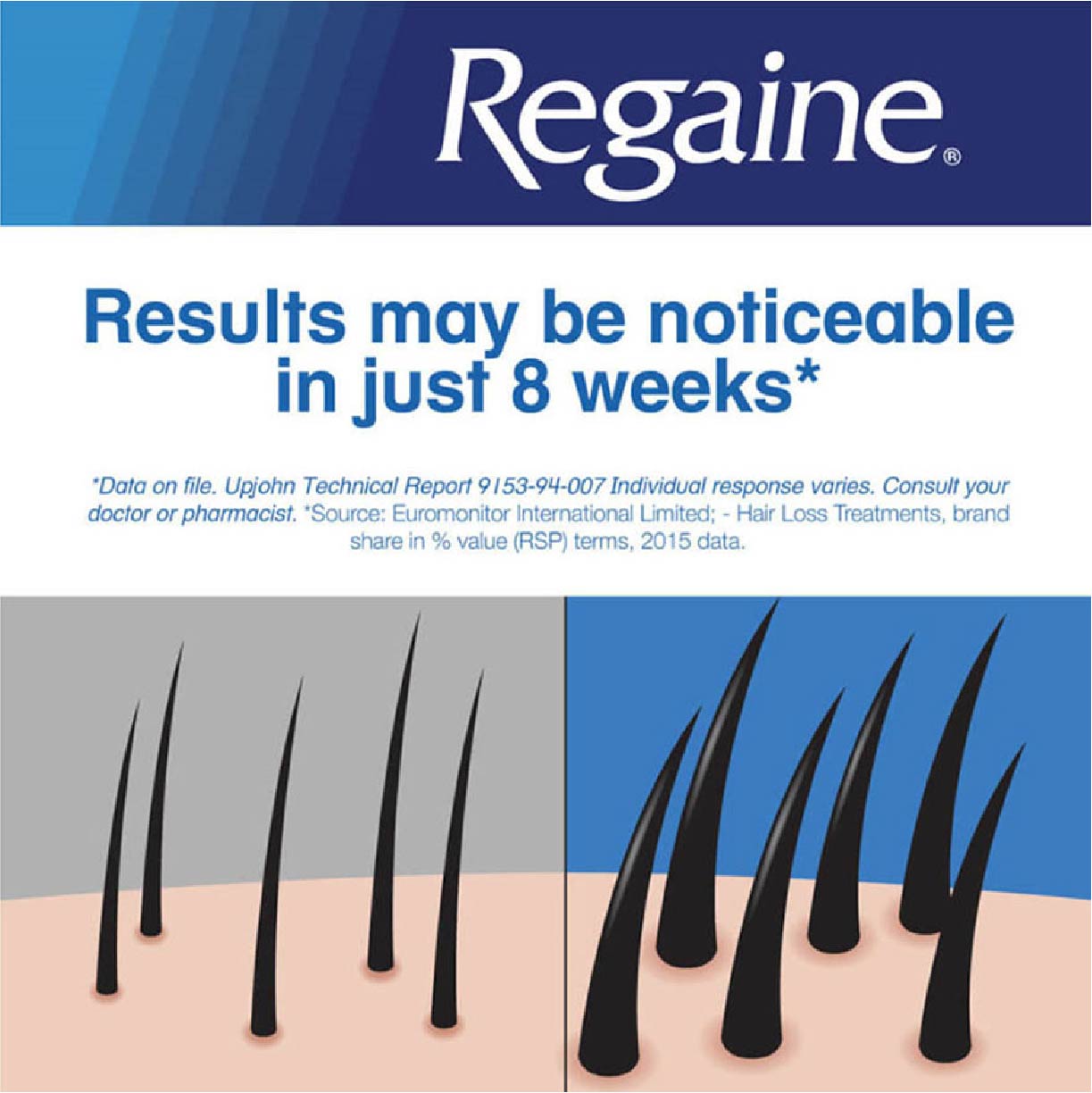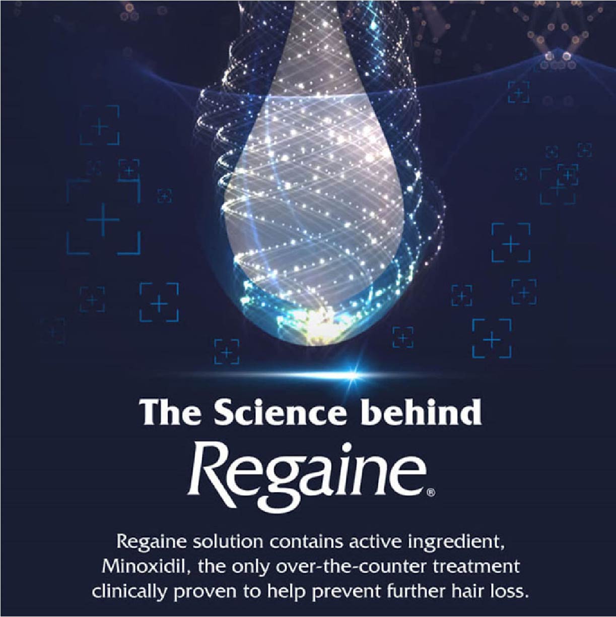 For topical use only. The hair and scalp should be thoroughly dry prior to topical application. Apply one dose (1 mL) of REGAINE® to the hair loss area of your scalp two times a day, preferably morning and night. Massage the solution lightly into your scalp, and wash your hands well afterwards. Response to treatment with REGAINE® may vary widely, and some patients may see faster results than others. Make sure the scalp is dry and that the skin is healthy and intact. Refer to Patient Information Leaflet for more information.