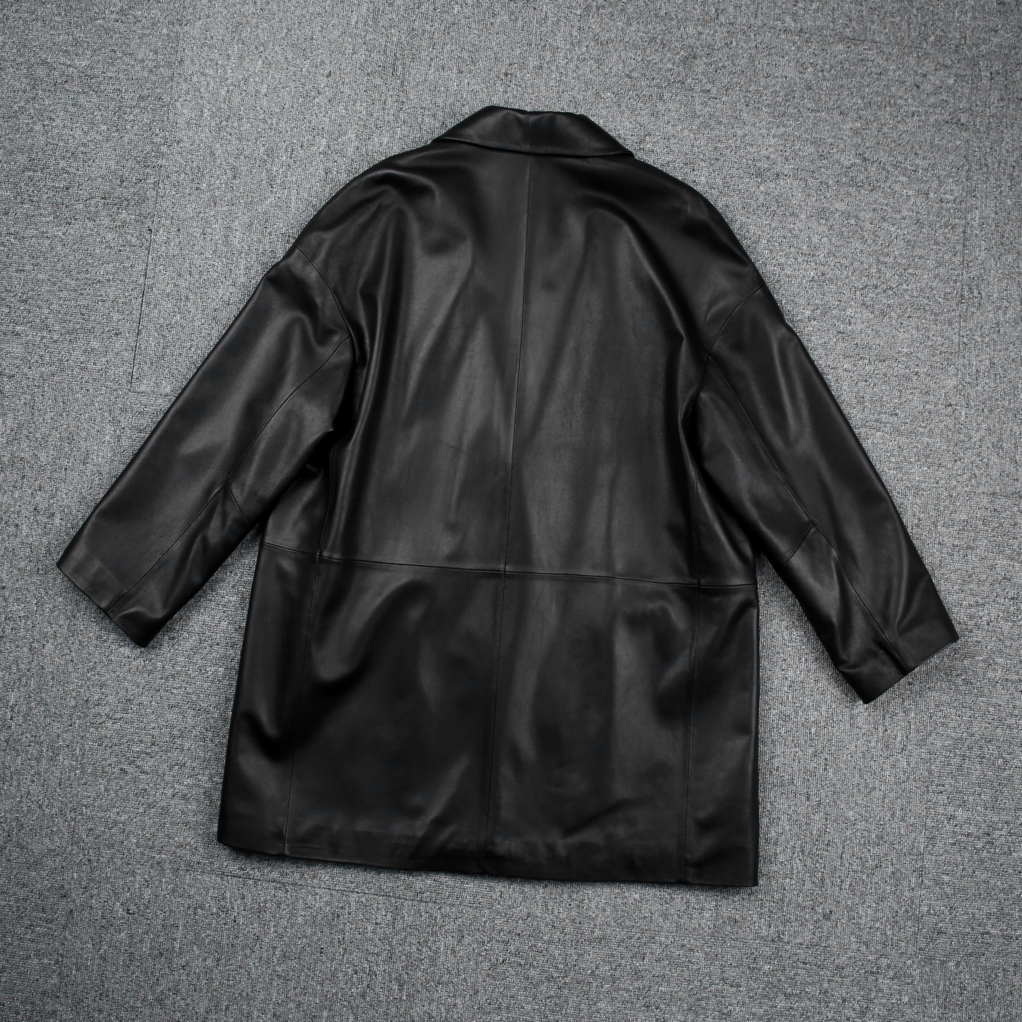 Fashion classic Oversize long sheepskin genuine leather jacket for men and women