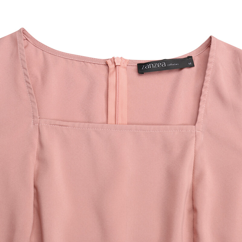 ZANZEA Women Square Neck Puff Sleeve Mini Shirt Dress Tiered Loose A-Line Sundress
