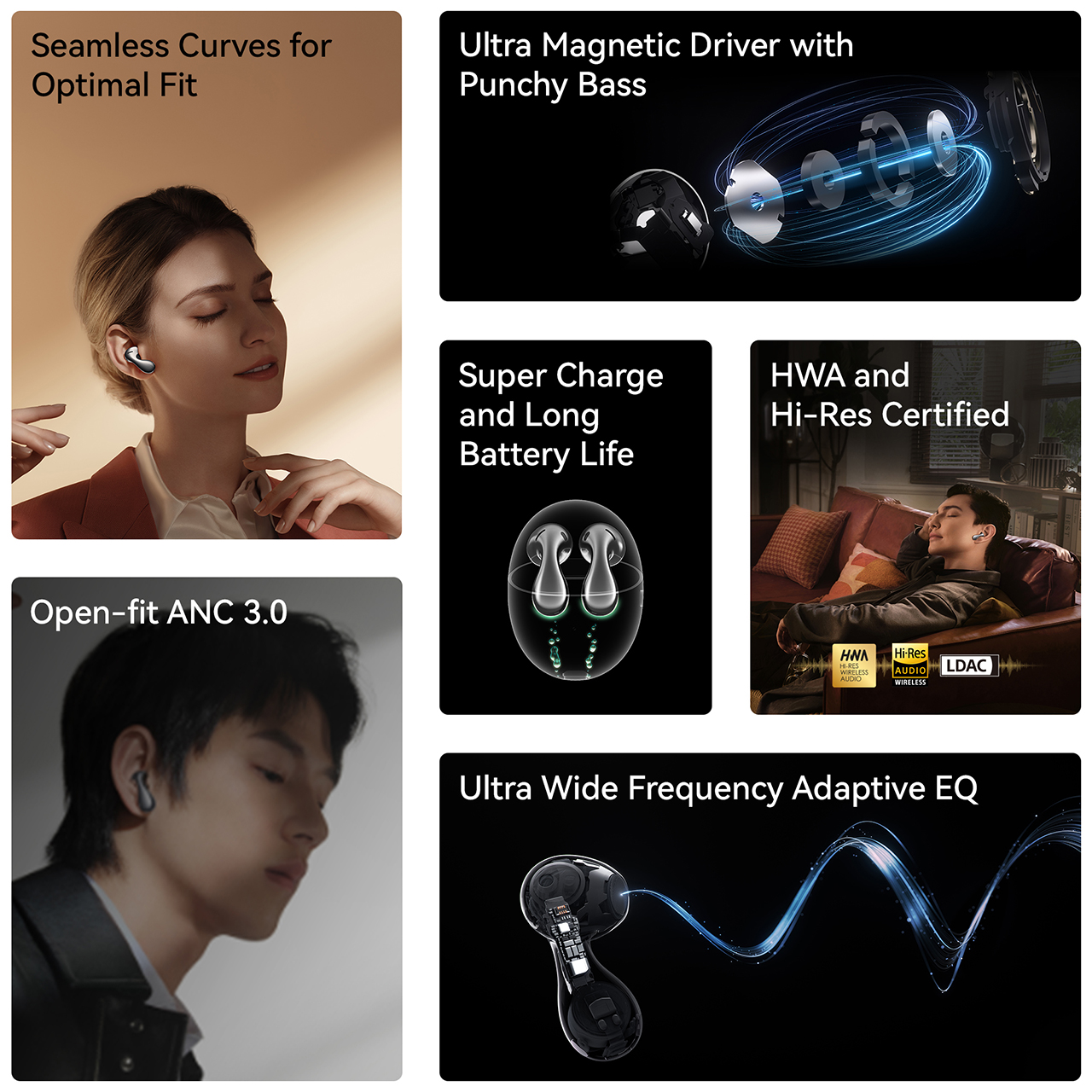 • Seamless Curves for Optimal Fit1 | HUAWEI FreeBuds 5 has been crafted to provide an ultimate level of comfort, thanks to their breathable open-fit design, fine-tuned by tens of thousands of ergonomic simulations.