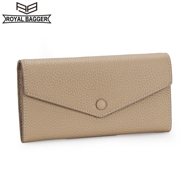 Royal Bagger Cowhide Long Wallet for Women Large Capacity Wallets Genuine Cow Leather Purses Envelope Slim Clutch Phone Purse