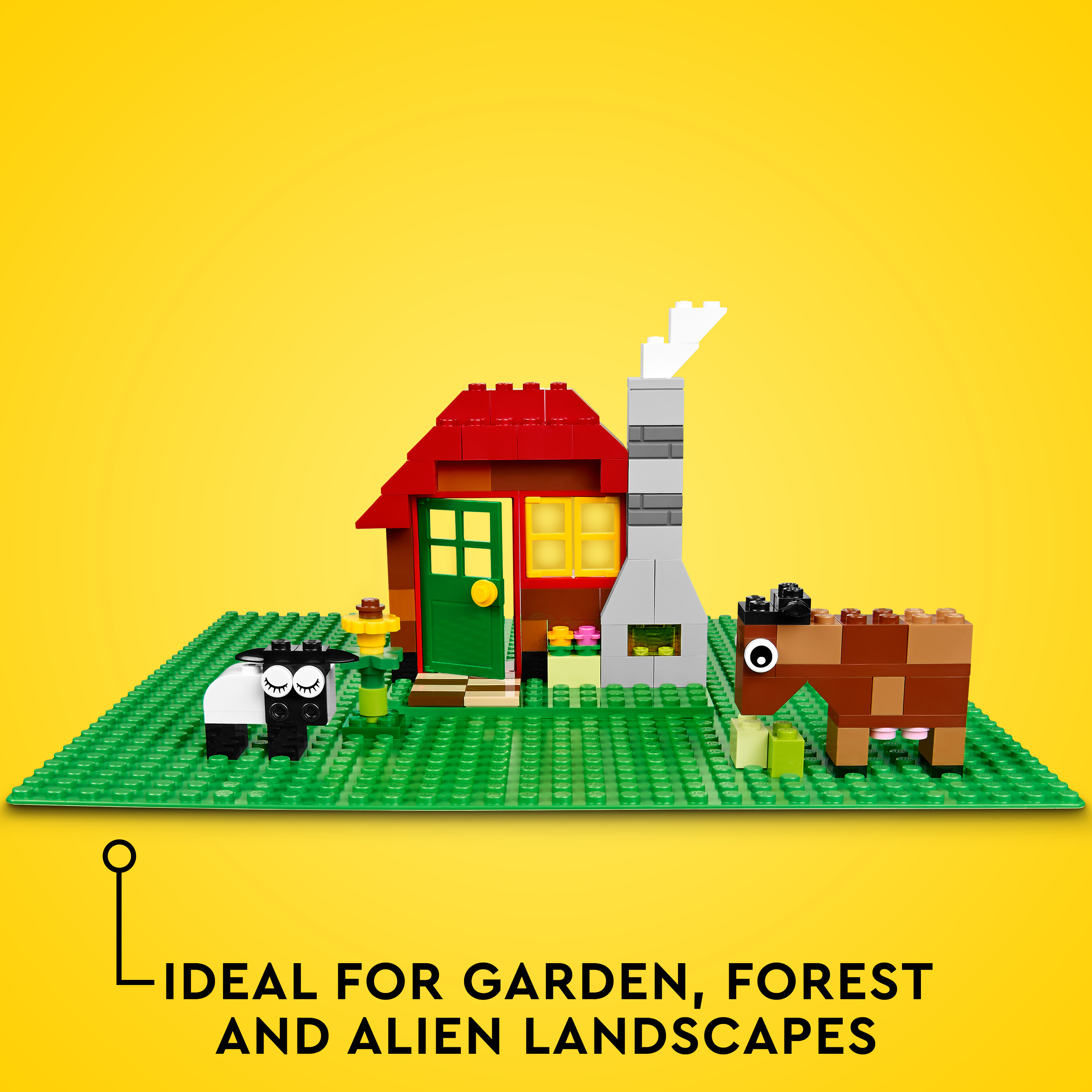 Set the scene for open-ended creative play with the LEGO® Classic Green Baseplate (11023). Measuring over 9.5 in. (25cm) square, this green toy-building base gives kids a spacious 32x32-stud LEGO landscape on which to build, play and display. Made for kids with big imaginations Inspire LEGO builders with a dazzling array of building possibilities – from gardens and forests to alien landscapes. This quality baseplate has enough grip to hold LEGO building bricks at any angle, even upside down!And when the building stops, the firm grip gives kids a collapse-free way to transport and display their creations. Building kids’ creativity LEGO Classic sets put self-expression and open-ended play into kids’ hands. And as they build, create and imagine, their free-thinking and problem-solving skills keep on growing.