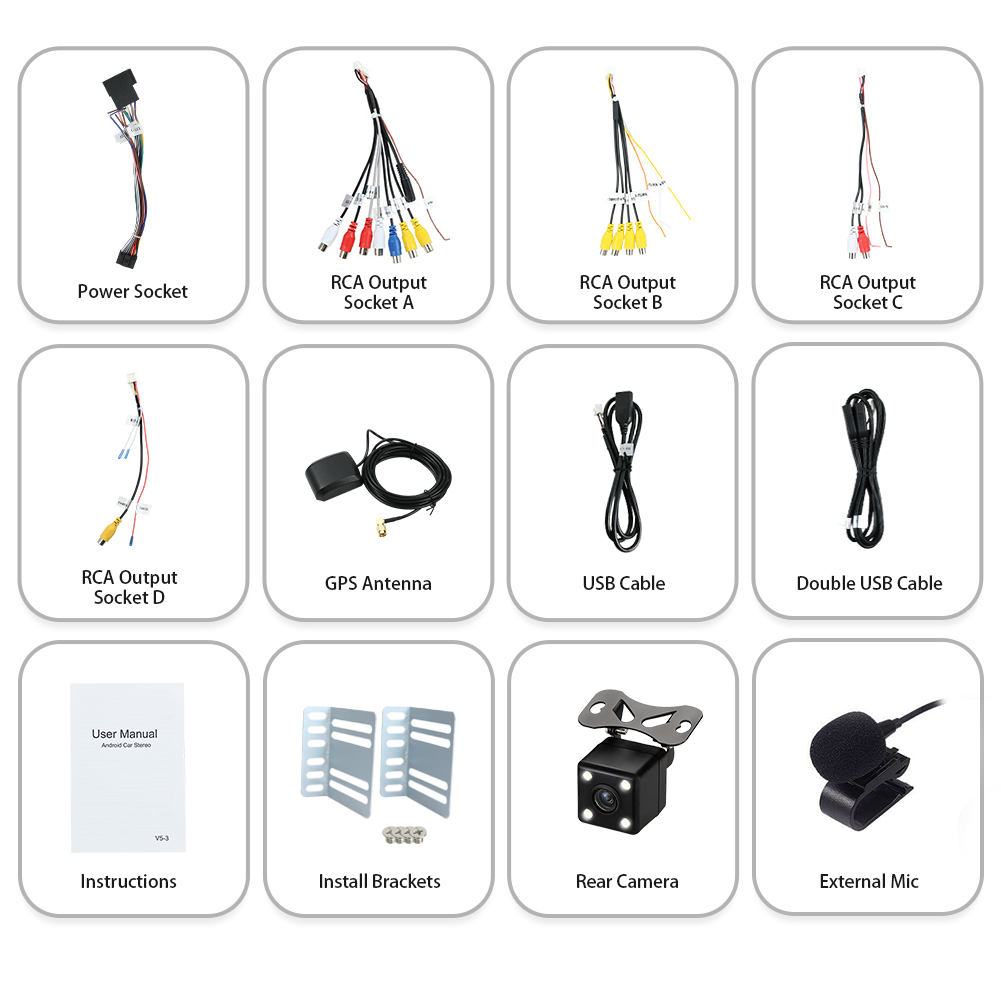 3:Reverse camera/Drive Record DVR From Rear USB: Support