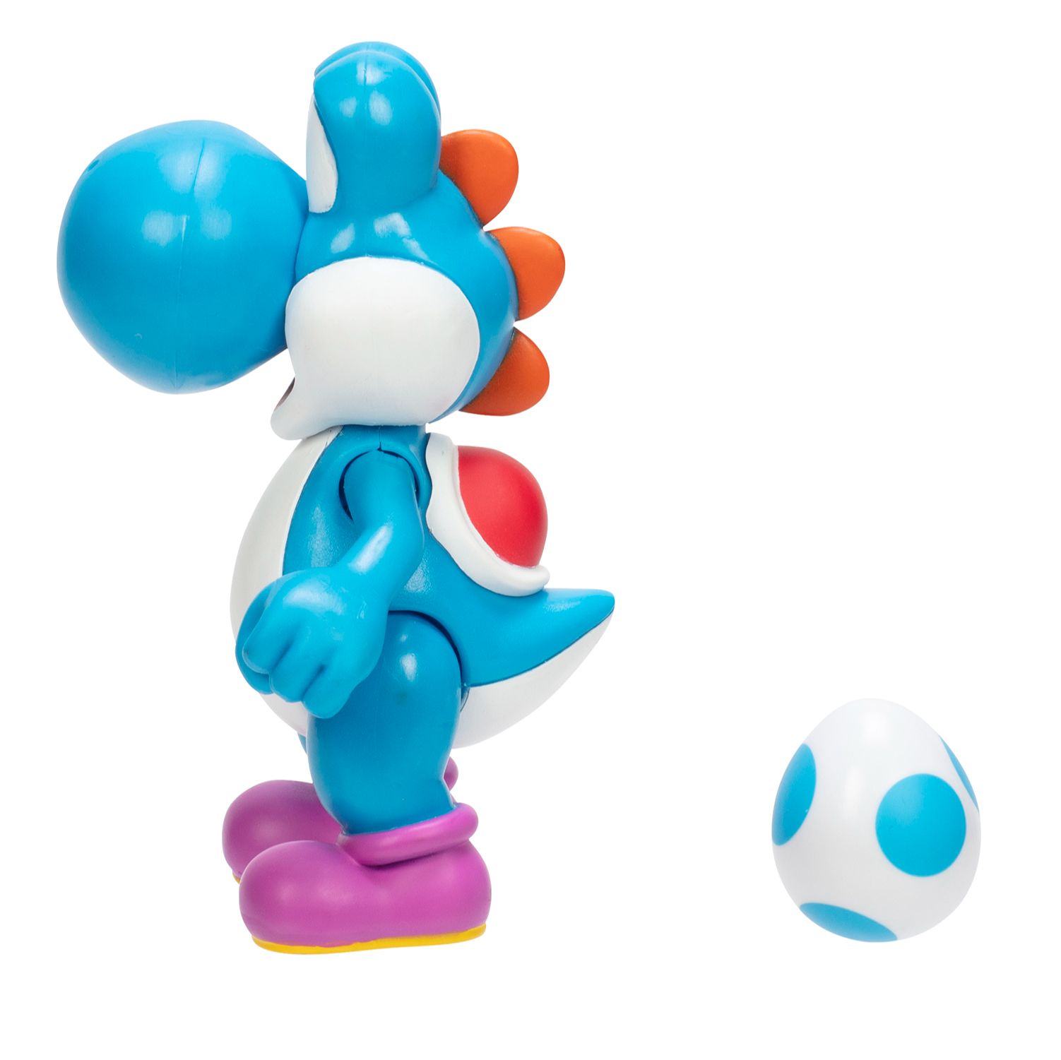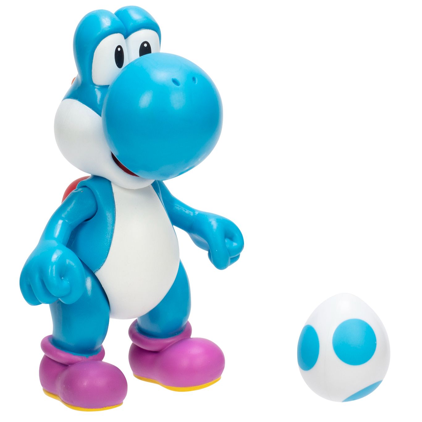 Super Mario Light Blue Yoshi 4-inch Articulated Figure with Egg Accessory, Collectible Figurines