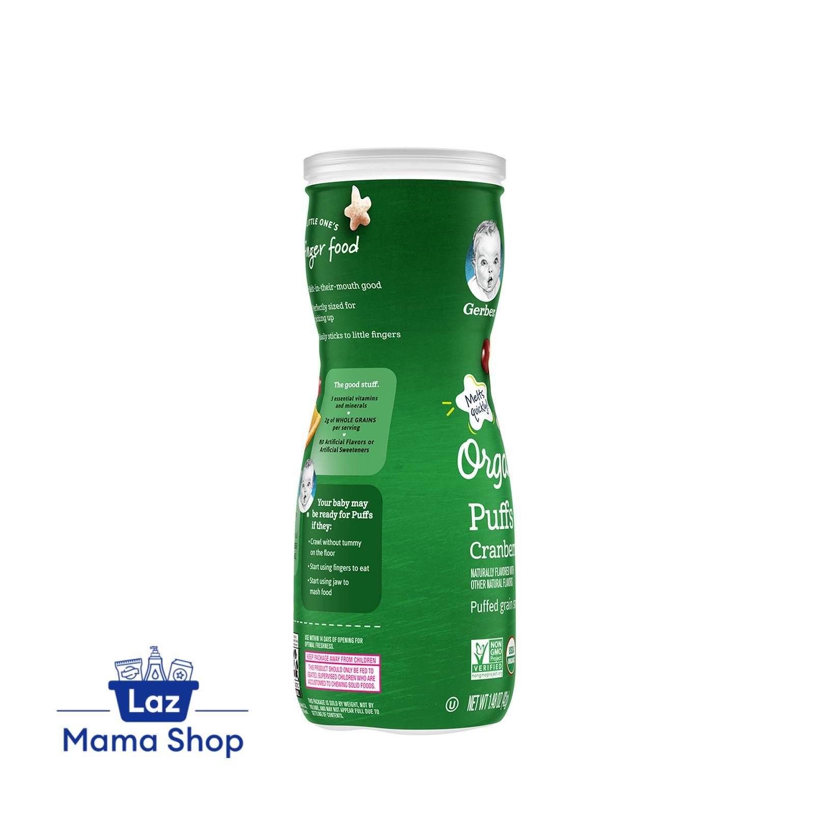 GERBER® Organic Puffs are light airy snacks made from whole grains. It melts in your baby's mouth for easy digestion and helps to encourage self-feeding.
