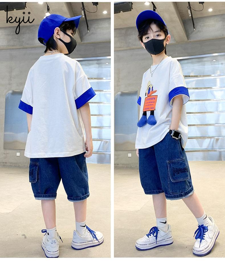 KYII Boys summer Stripe short sleeves Shirt two-piece set kyb021