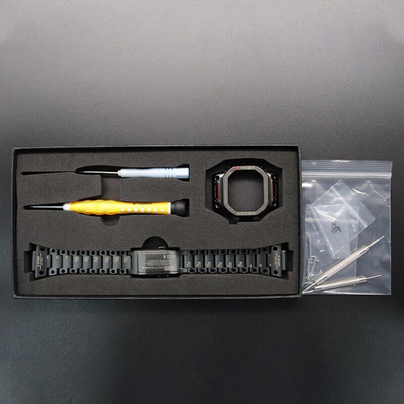 For Casioak G-SHOCK DW5600 DW5610 GWM5610 Mod Kit Metal Bezel Case Frame Band Stainless Steel Strap Replacements with Tools