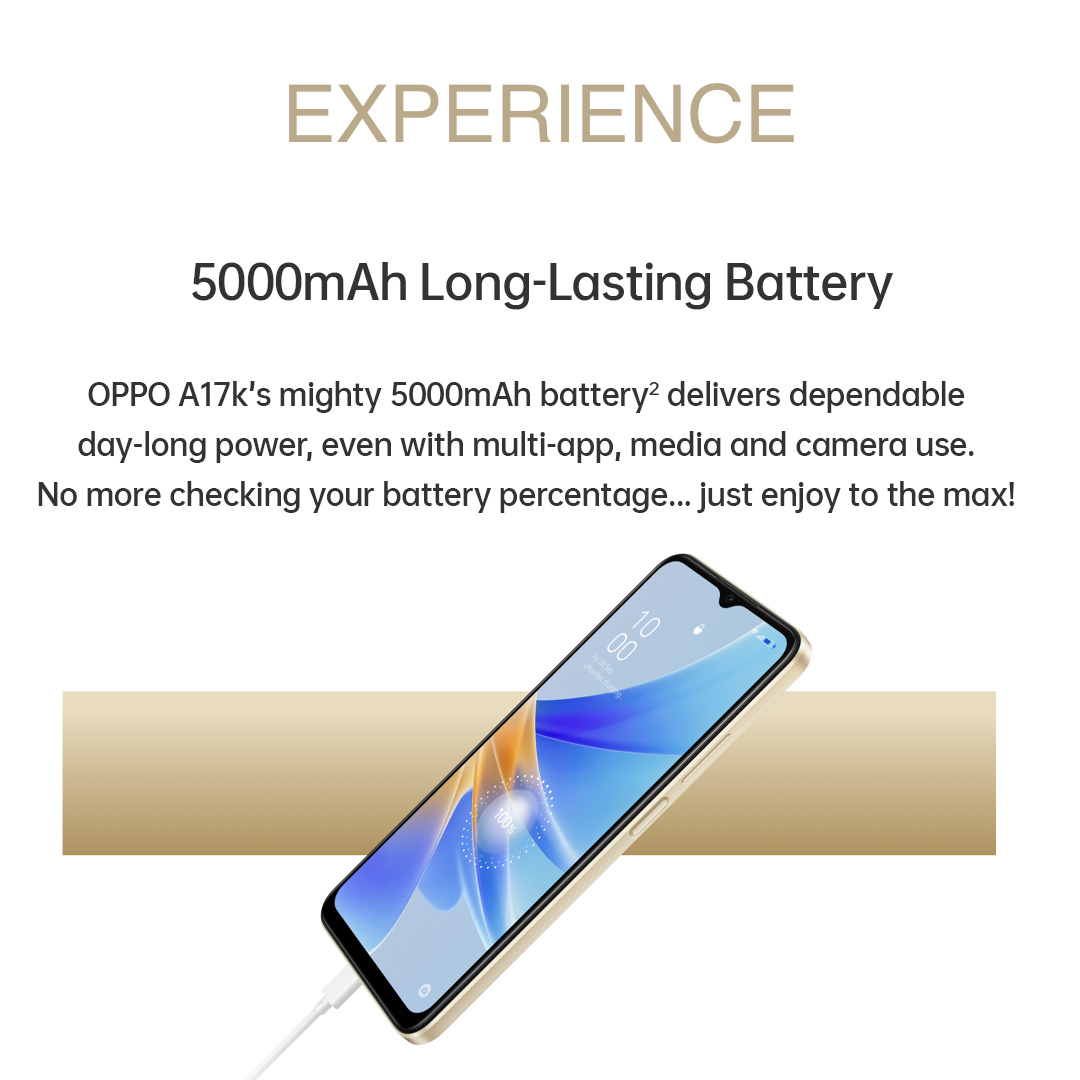 OPPO A17K / IPX4 Water-Resistance / 5000mAh Long Lasting Battery / Side Fingerprint Unlock / 4GB Extended RAM