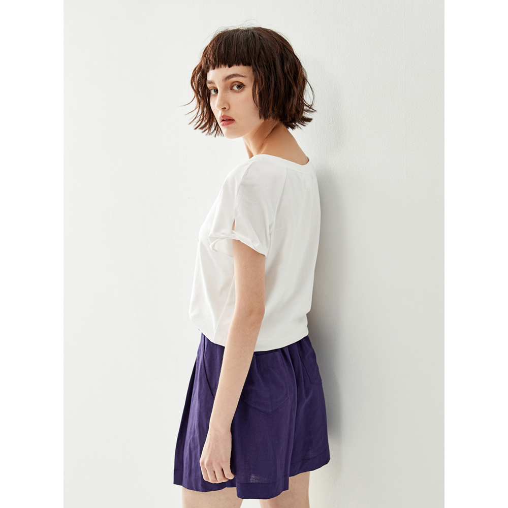 iROO Women Fashion V-Neck Basic Tee With Front Graphic Print