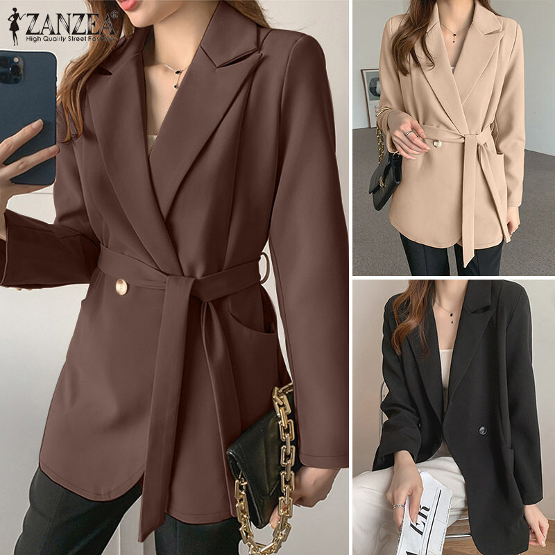 ZANZEA Womens Formal Office OL Plain Fashion Blazer Jacket Lace Up Business Overcoat #11
