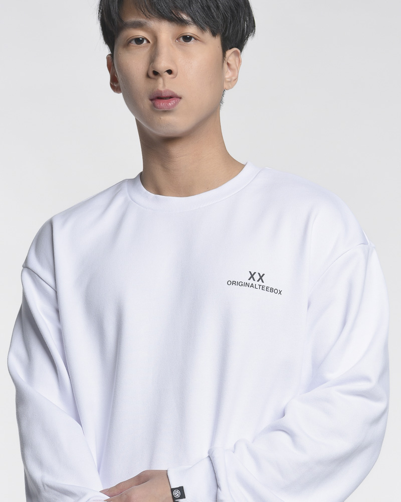 Yishion Men Oversized Solid Coloured Long Sleeve Sweatshirt with "ORIGINALTEEBOX" Logo (White)