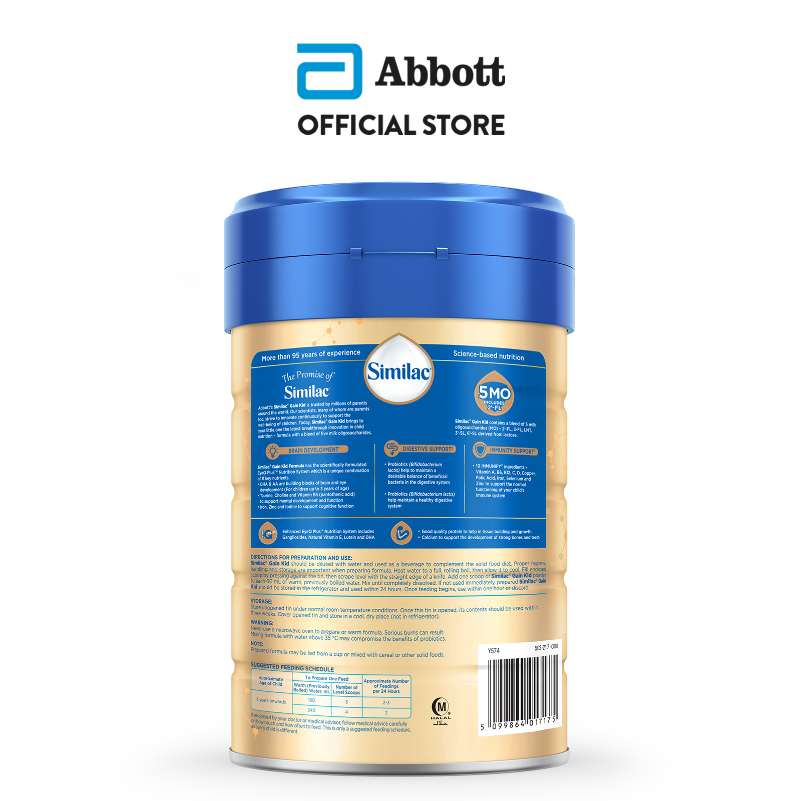 [Bundle of 3] Similac Gain 5MO Stage 4 Kid Pre-school Milk Powder Formula 850g (3 years onwards)