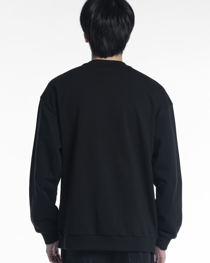 Yishion Men Solid Colour Long Sleeve Sweatshirt with Green Rubber Bear Patch Embroidery and Slogan (Black)