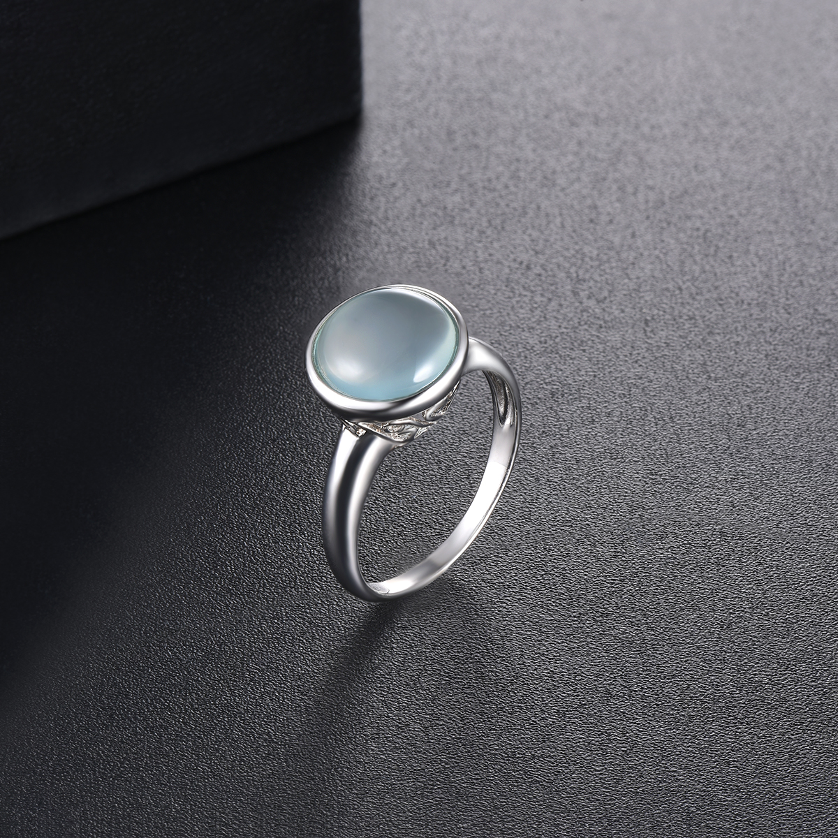 Real 925 Sterling Silver Simple Design Women's Chalcedony Wedding Ring