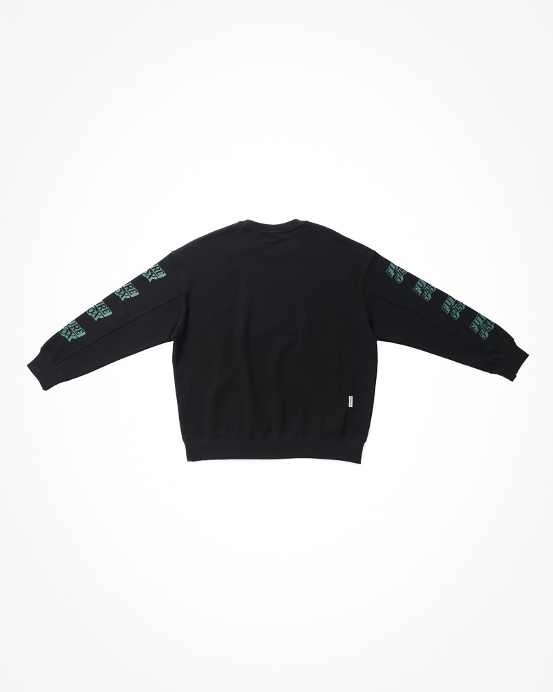 Yishion Men Long Sleeve Sweatshirt with '545' Logo Embroidery and Sleeve Prints (Black)