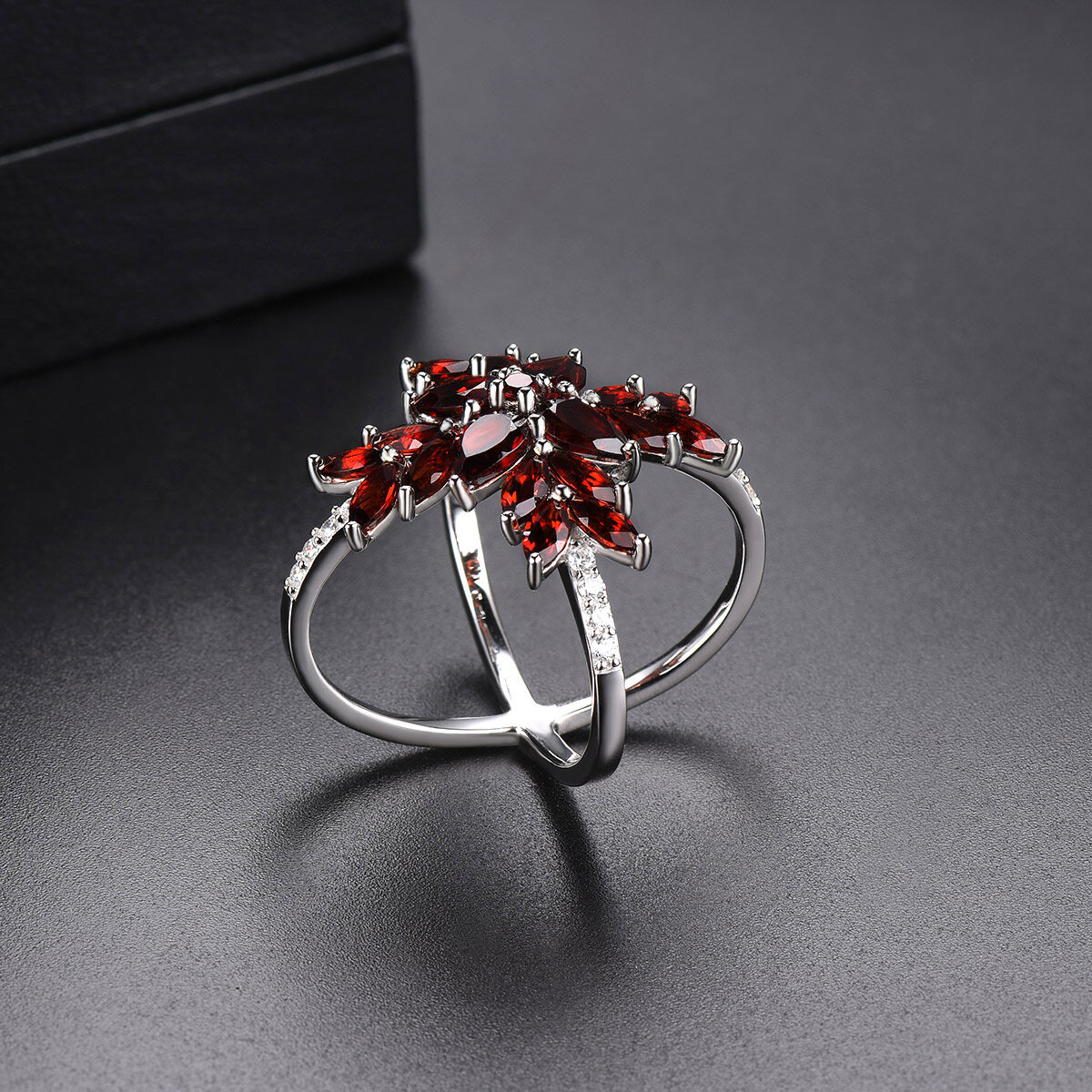 Real Garnet Women's Ring Solid 925 Sterling Silver Natural Red Gemstone