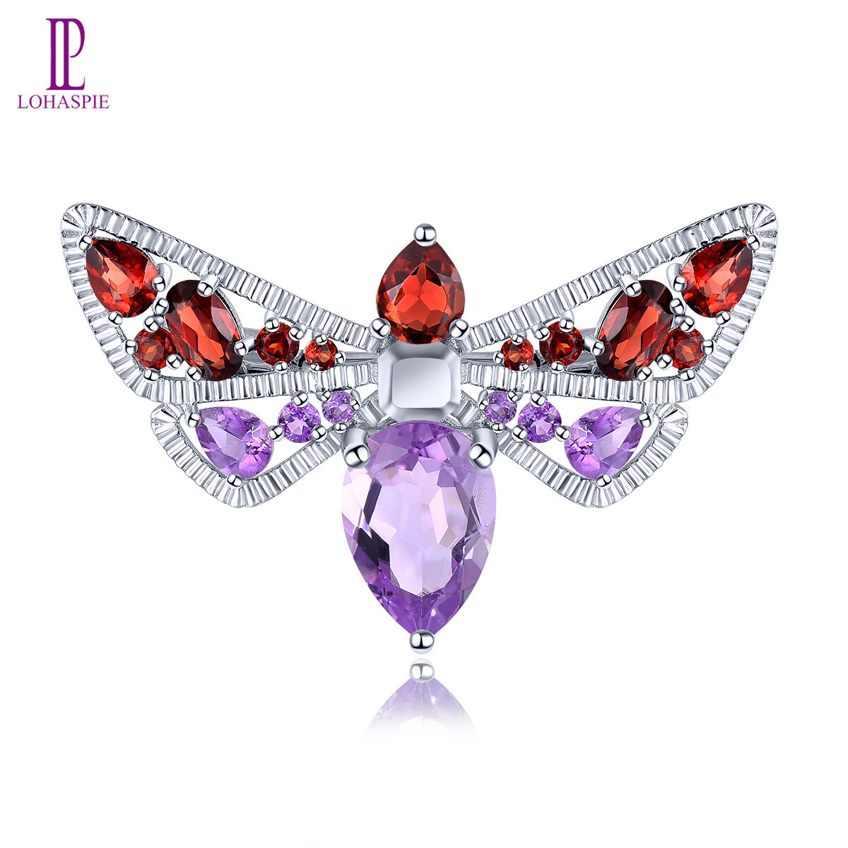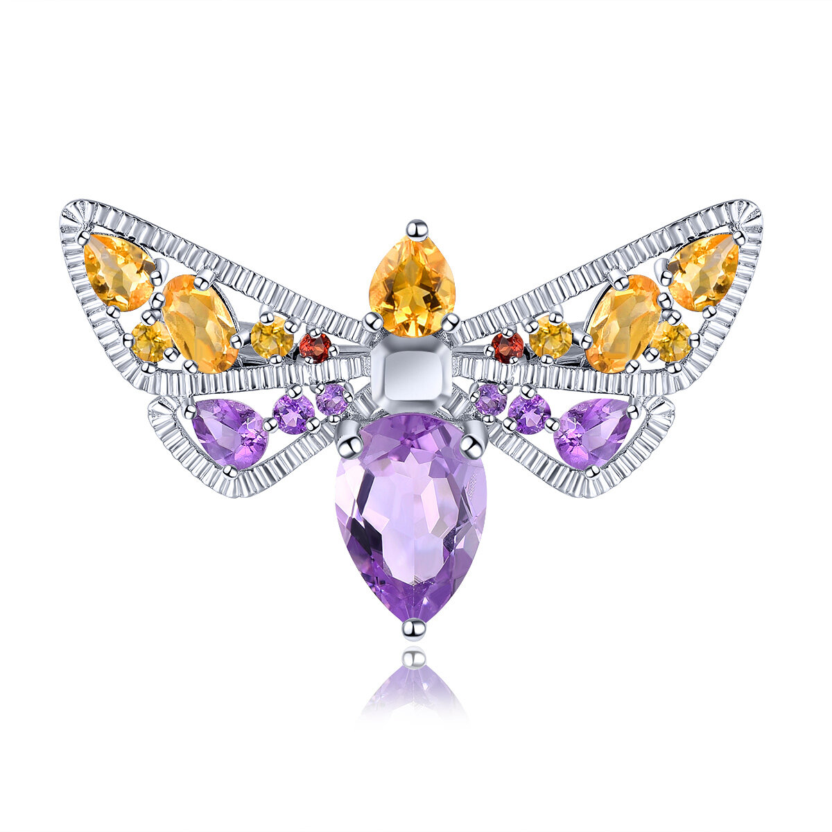 Natural Amethyst Red Garnet Citrine Bird shape Brooch Silver 925 Original Design Fashion Korean Style Jewelry Accessory Fine Elegant Birthday Accessory Gift for Women