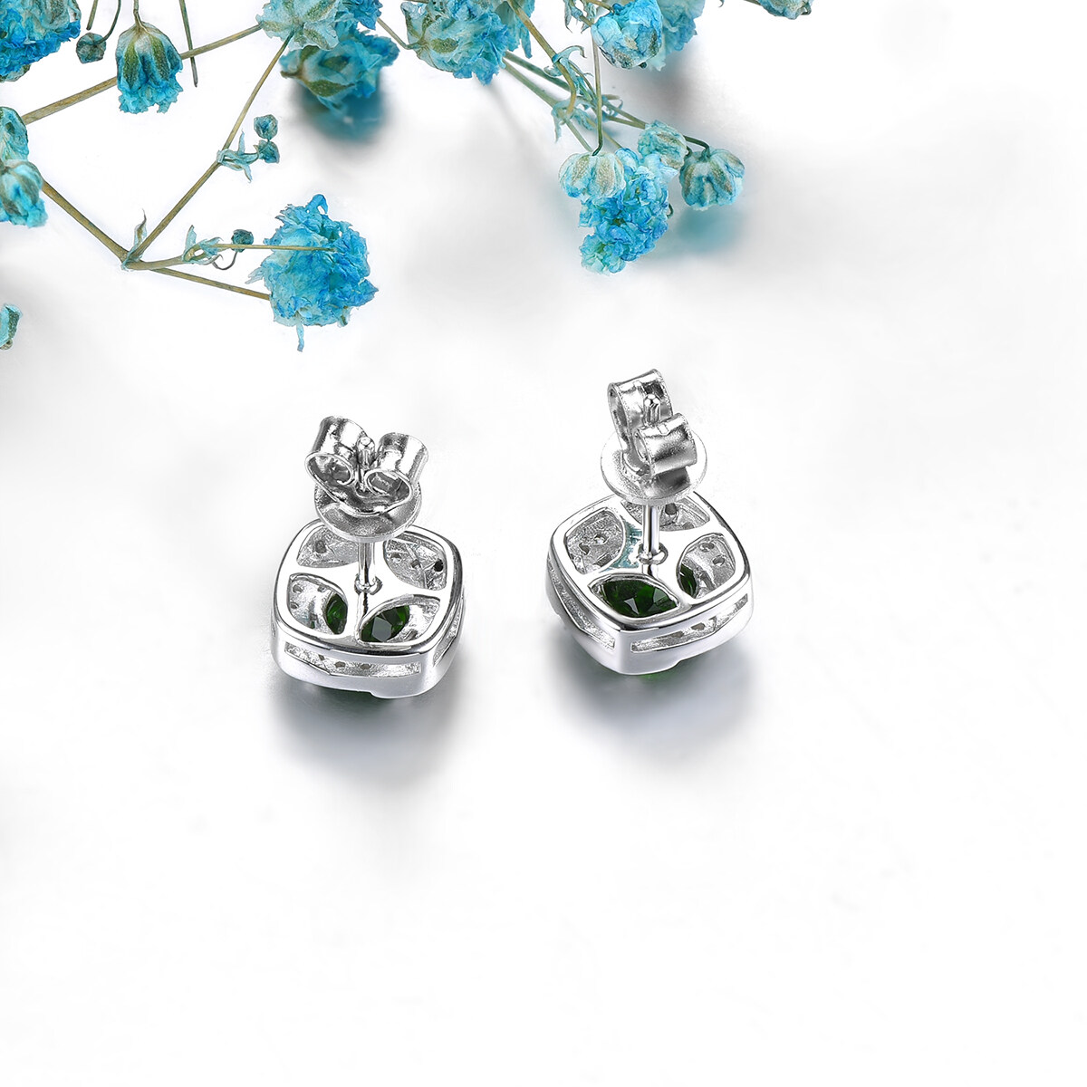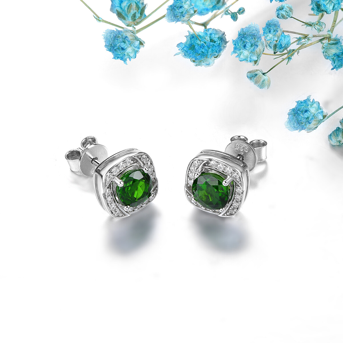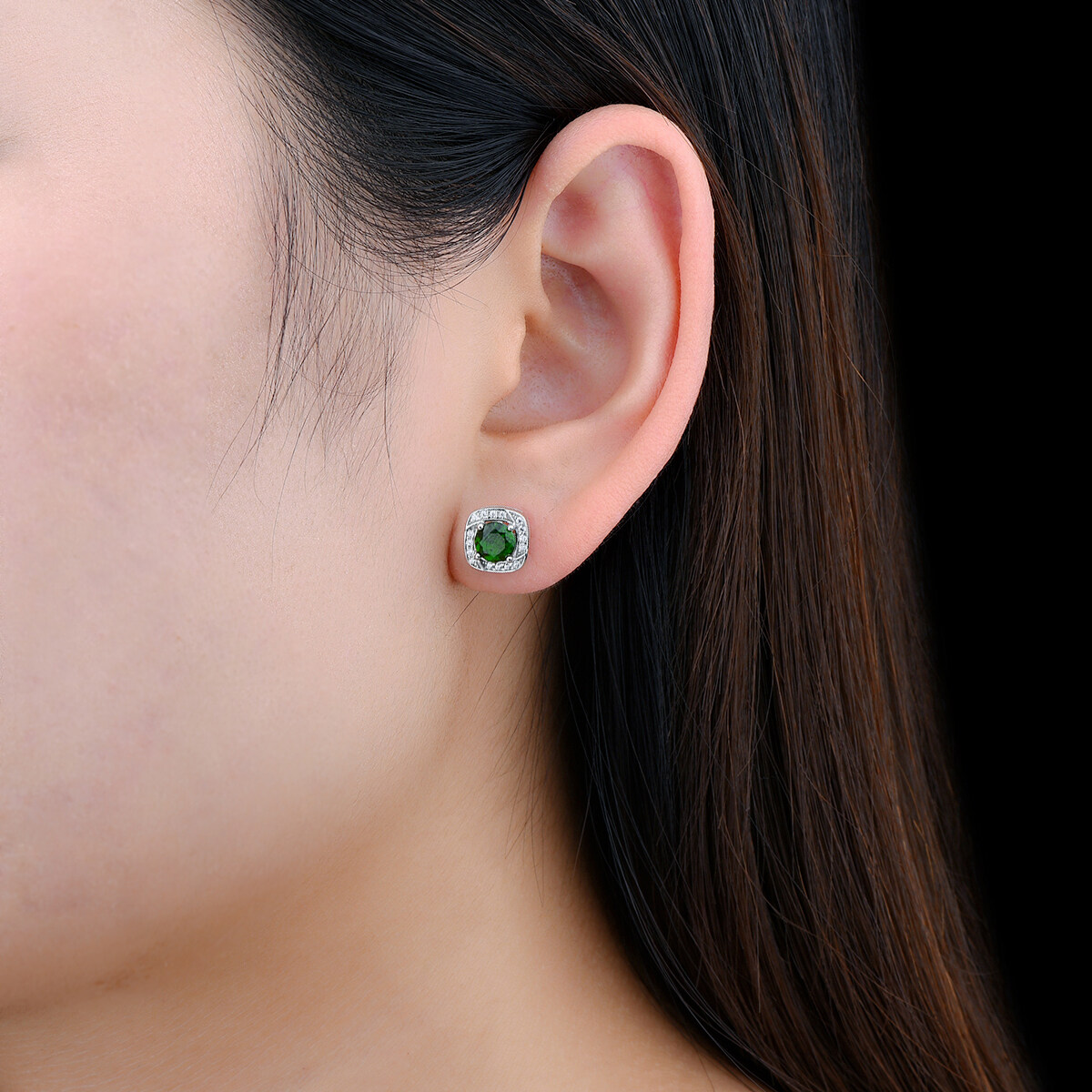 Lohaspie Jewelry Real Silver Stud Earring With Stone Natural Chrome Diopside Earrings Green Gemstone Earring For Lady Christmas Gift Jewelry