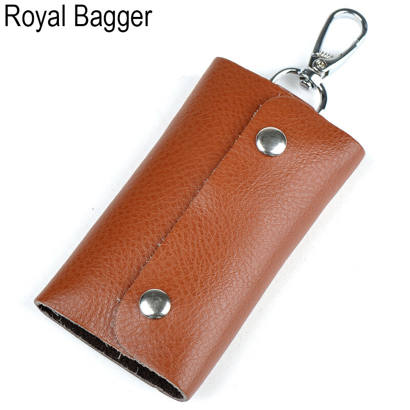 ROYAL BAGGER Genuine Cow Leather New Couples Ladies Key Bag For Women Girls Boys Men Card Purse Korean Style Keys Bags Fashion Wallet Sets Holders