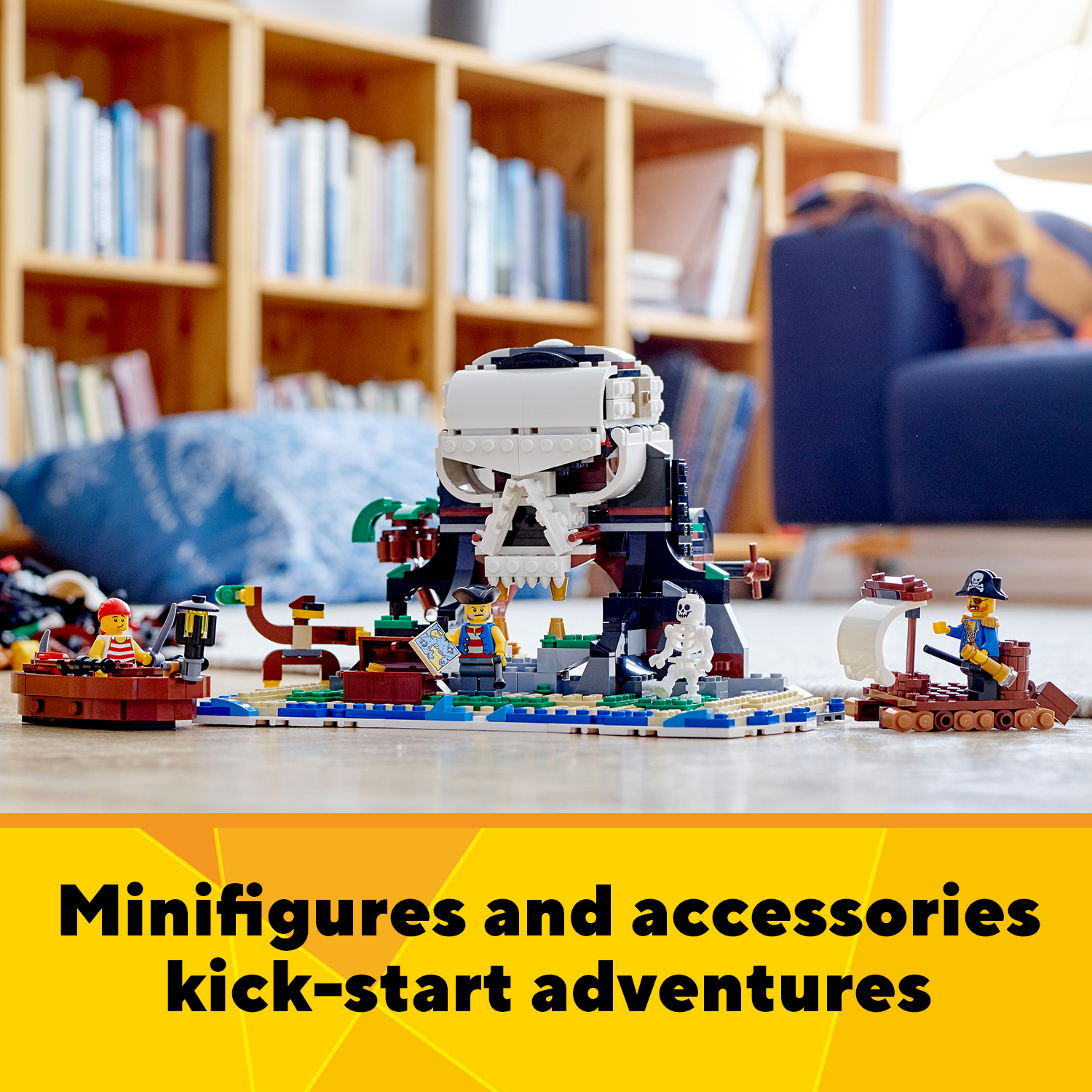 The set includes a captain, 2 crew members and a skeleton. Kids can use them in any 1 of the 3 models they choose to build. The minifigures make great story starters for thrilling pirate-themed adventures!