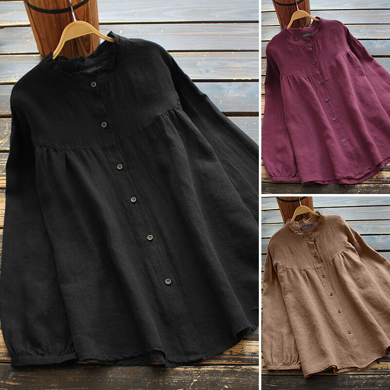 ZANZEA Women Button Down Shirt Tee Cotton Plus Size Long Sleeve Blouse NEW
