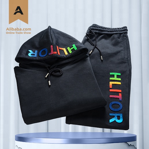 Finch garment Custom embroidery logo mens hoodie set track sweat training wear jogging toothbrush embroided tracksuit