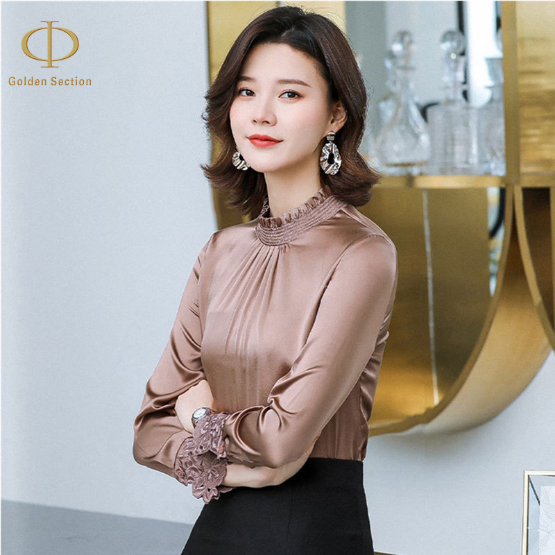 New Arrival Fashion Silk Elegant Women's Tshirt Lady Tops And Blouses Women's Long White And Black Shirts