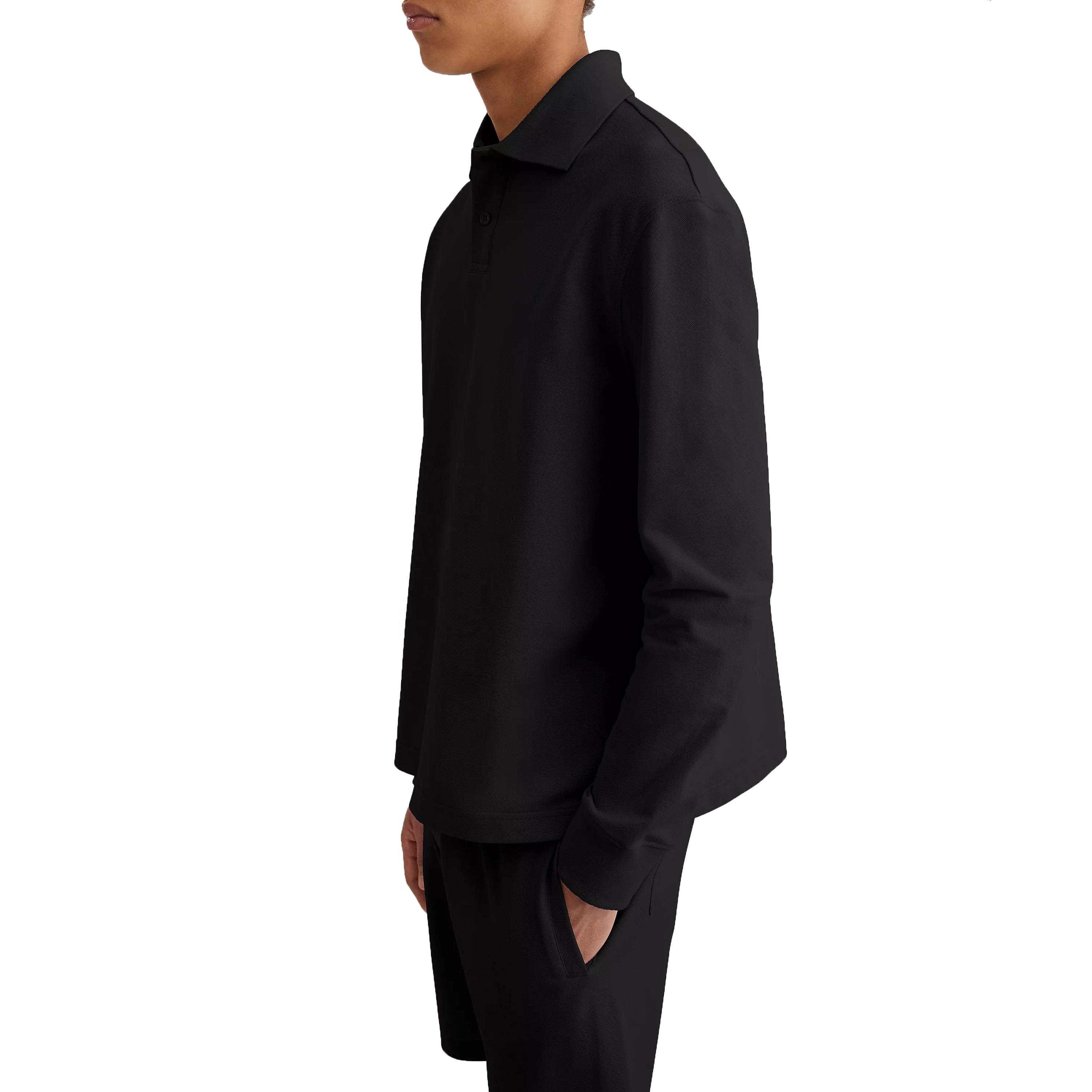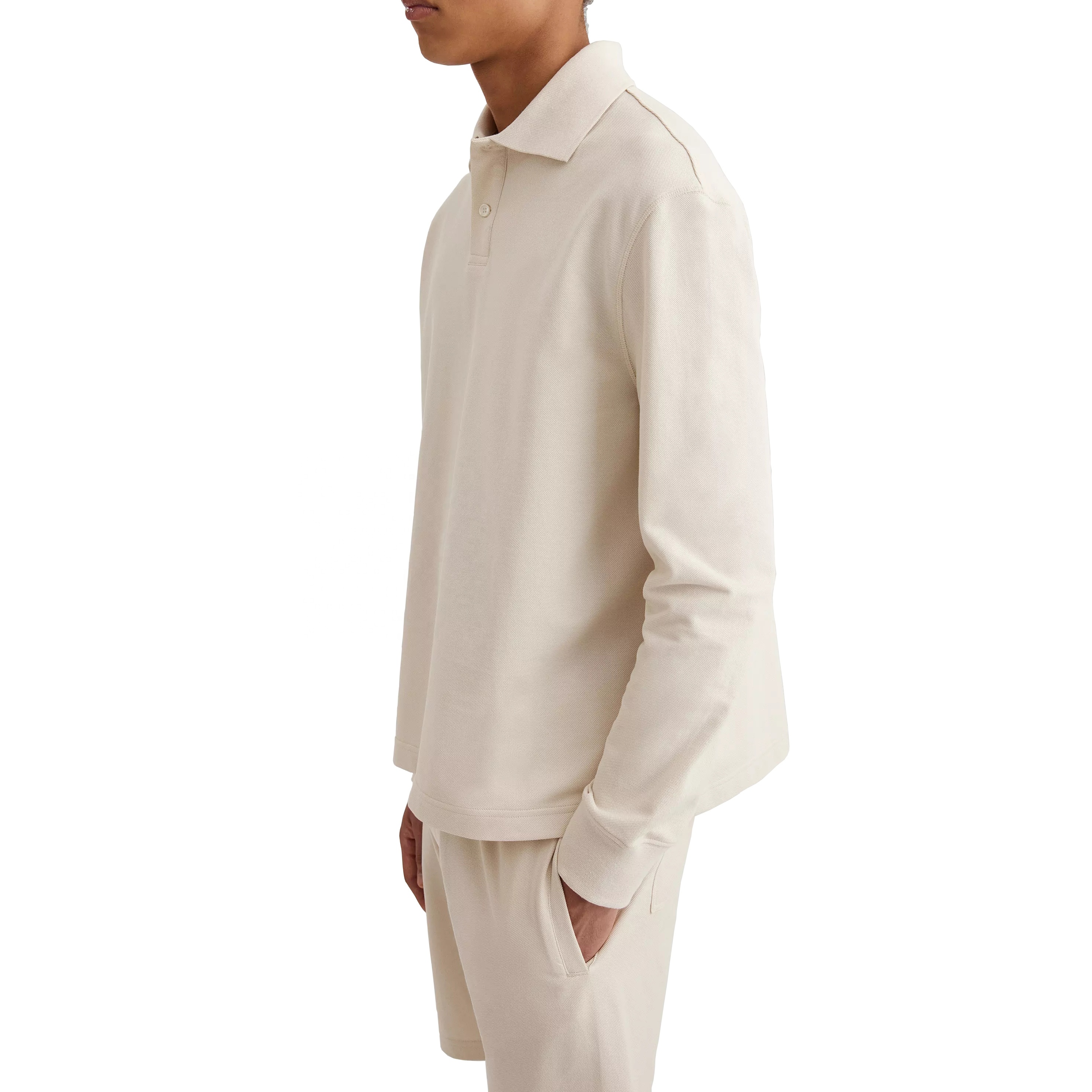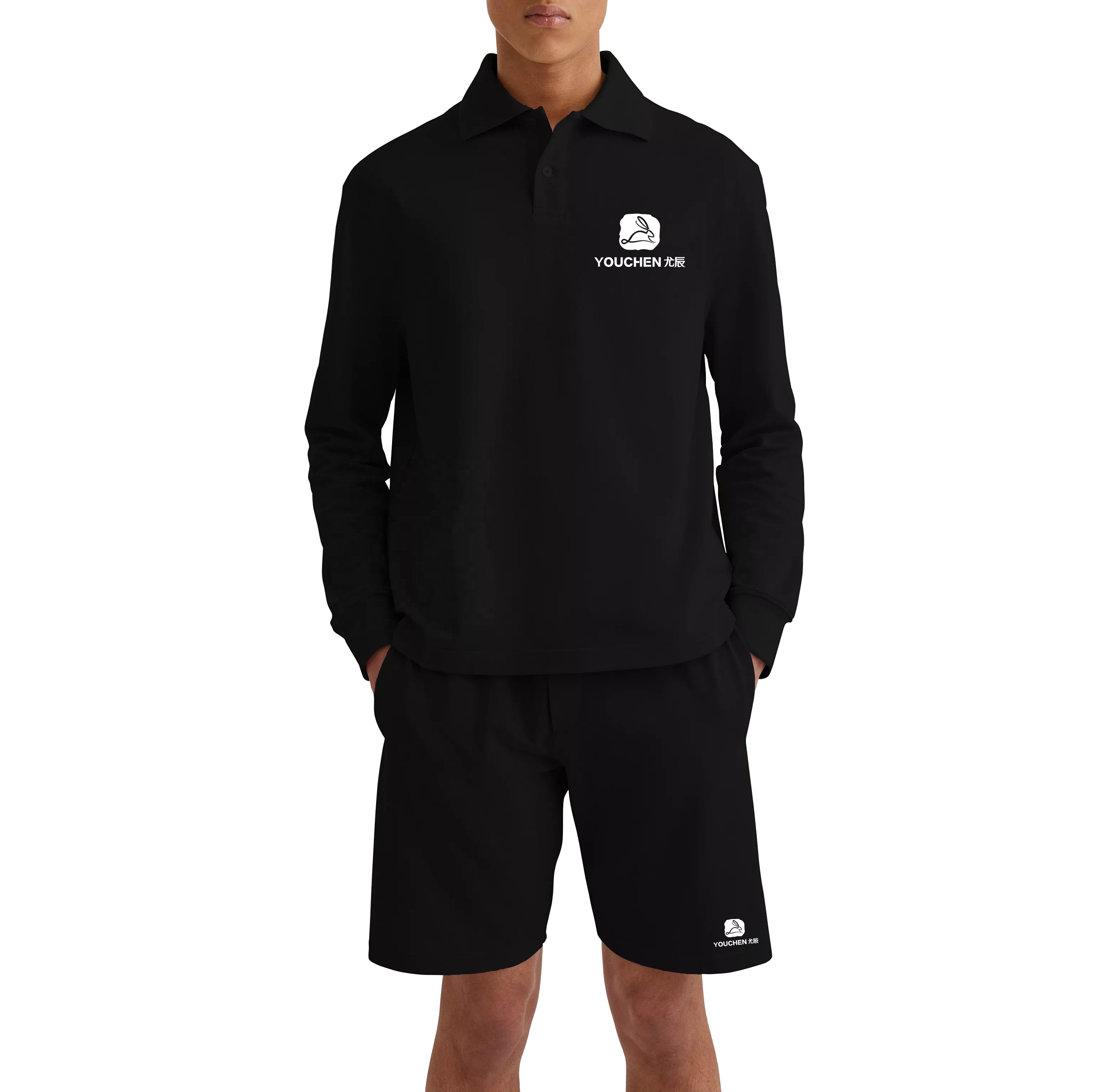 Men Streetwear 100% Cotton Long Sleeves Embroidered Polo Shirt For Men Point Collar With Button Placket