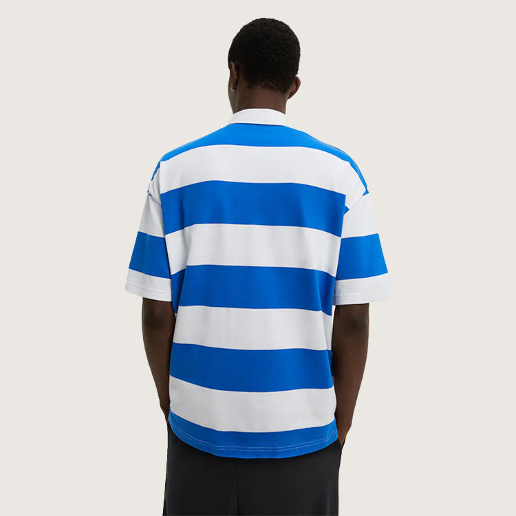 PL510 Custom wholesale oversized wide stripe fashion short sleeve rugby polo shirt for man