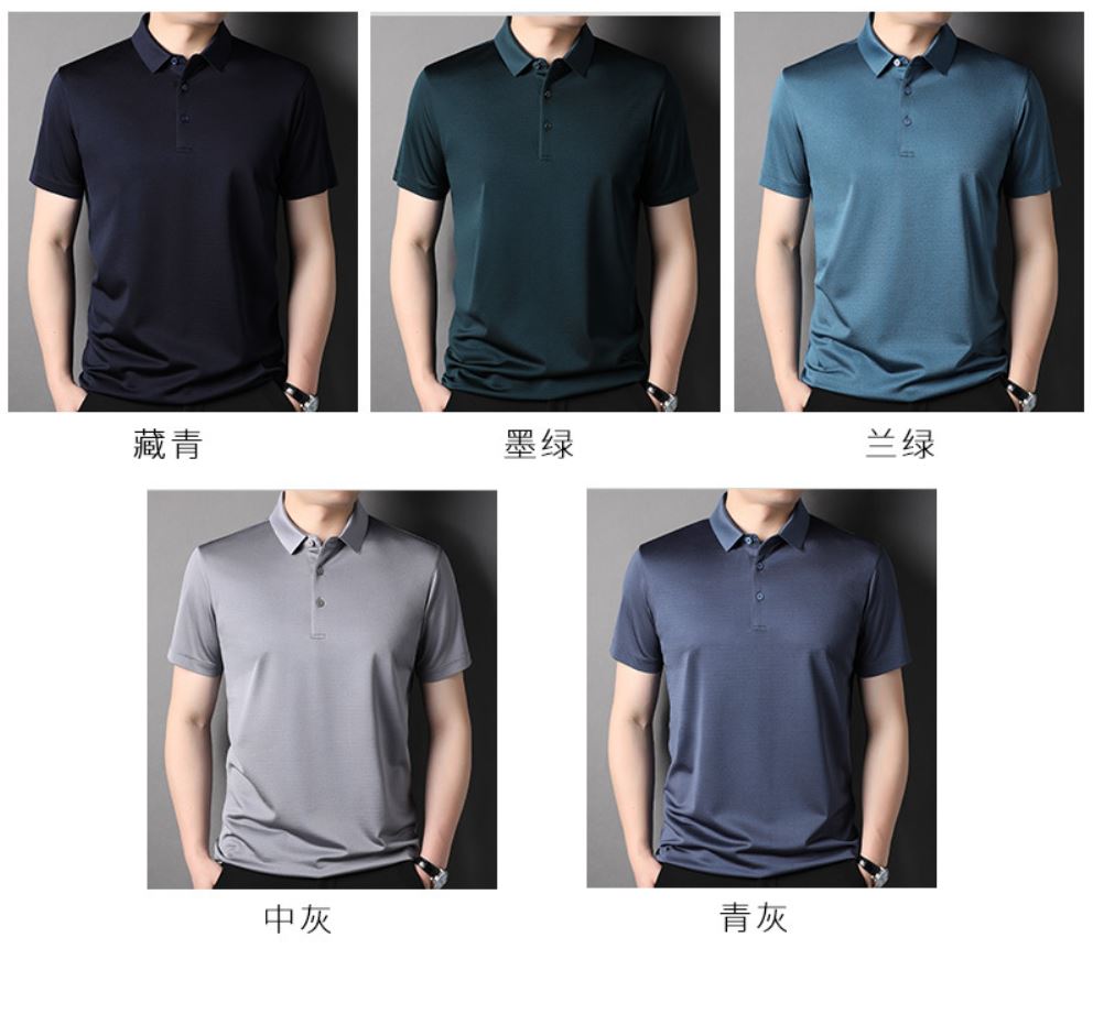 Factory Wholesale Men's Luxury Natural Material Solid Silk Polo Shirts 5 Colours