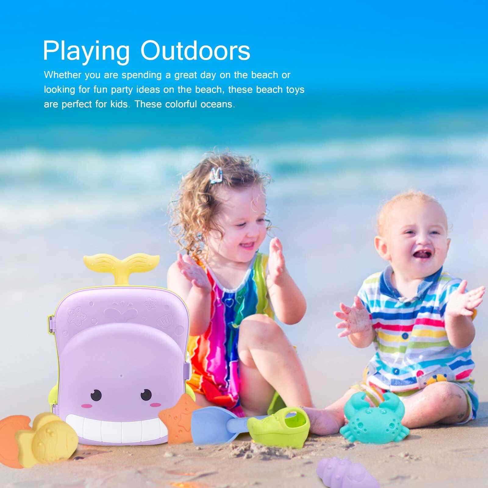 HYG trolley box toy 8PCS Sand Molds Toys 2 in 1 Children's Summer Beach Toy Set Whale Luggage Trolley Box Summer Sand Shovel Outdoor Water Toy
