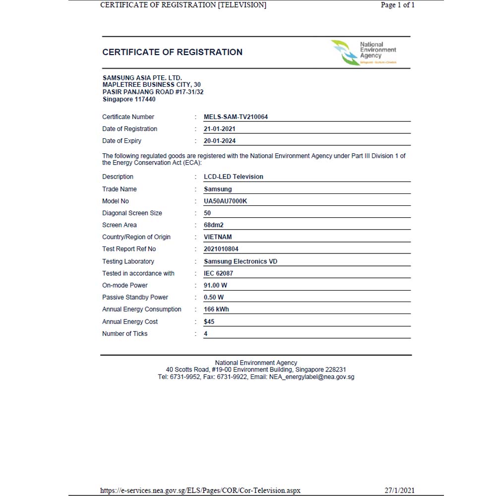 (Bulky) Samsung UA50AU7000KXXS UHD 4K Smart TV (50inch)(Energy Efficiency (NEA) - 4 Ticks)