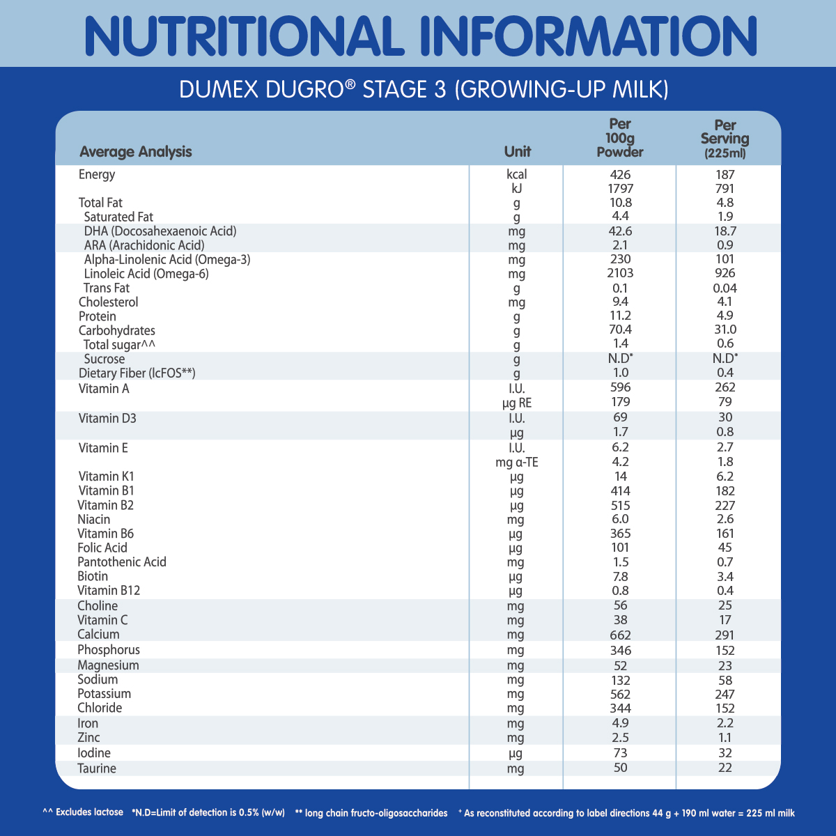 Dumex Dugro Stage 3 Growing Up Milk Formula (700g) x 6