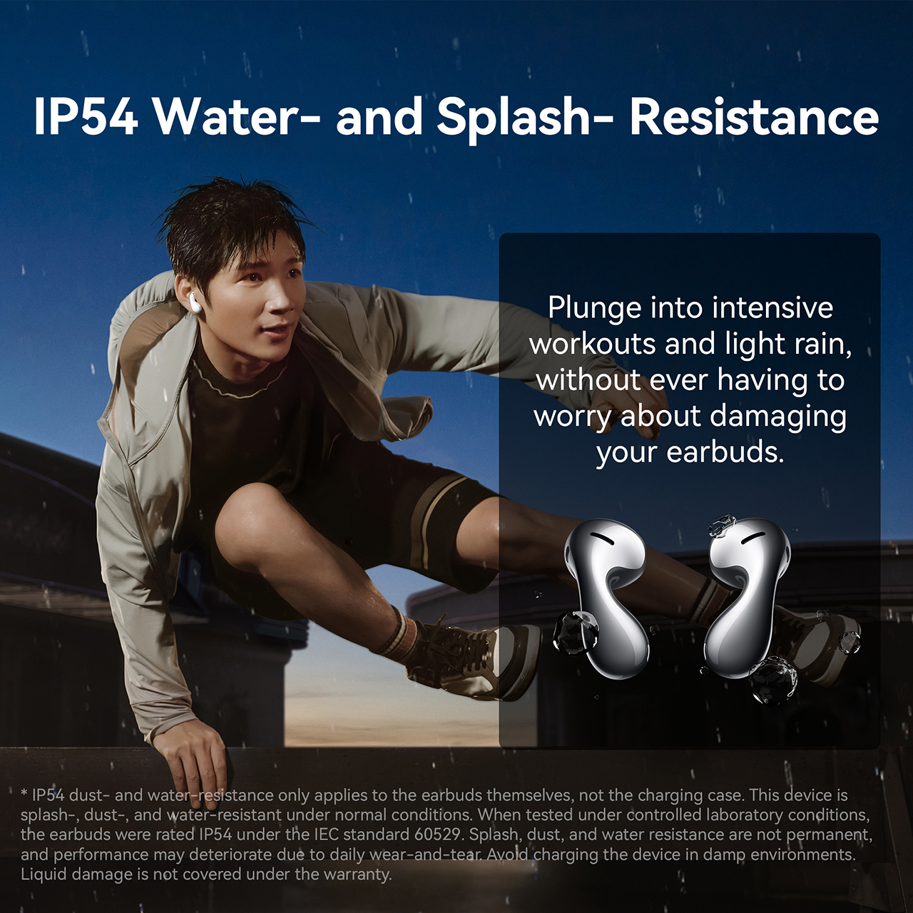 Note: Battery life and charging data comes from Huawei lab tests. Actual battery life and charging duration will vary depending on the volume, audio source, environment, usage, and other factors.