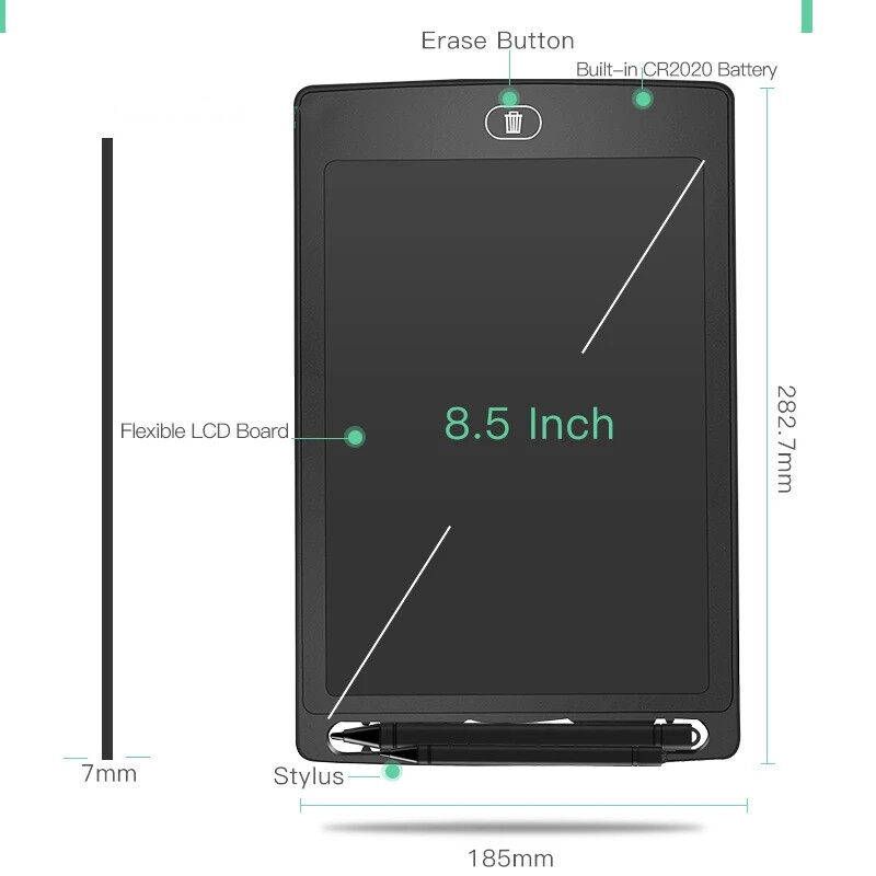 Pressure-sensitive LCD writing surface makes your writing or drawing appear without any delay.
