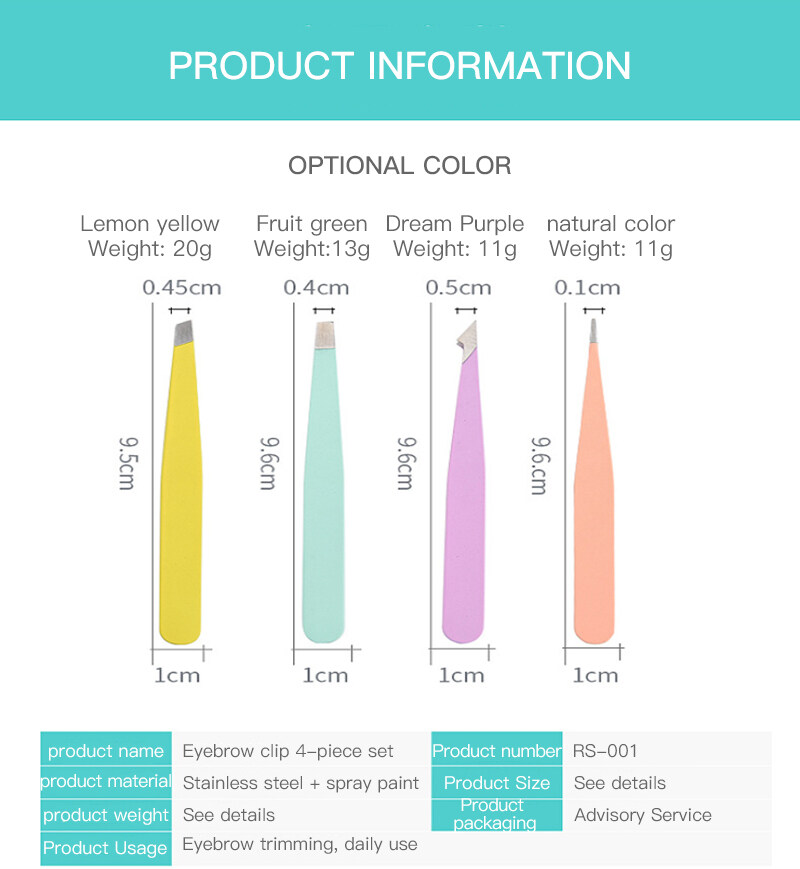 Hair Removal Tweezers Stainless Steel Eyebrow Tweezers Pink Slanted Black Tip Point Face Harmless Makeup Beauty Tool
