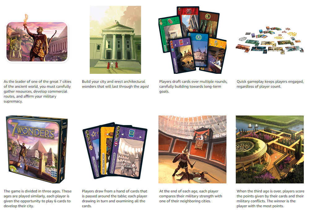 7 Wonders Strategy War Board Game | 3-7 Players | Fun Civilization Family Board Games | Wonder Party Gift for Teen & Adult