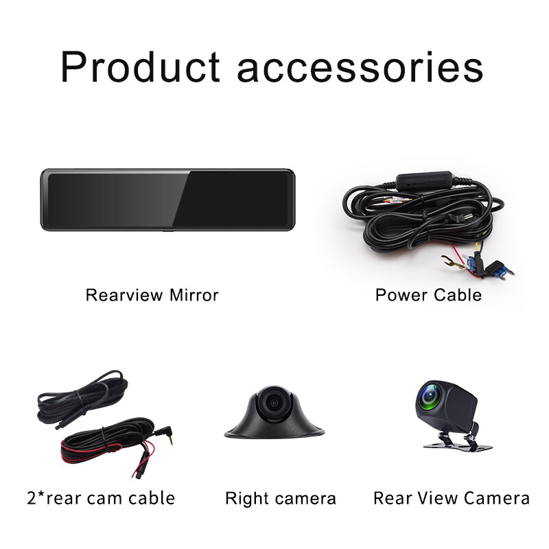 EKLEVA 12 Inch Touch Screen 1080p wifi and App 3 camera View Car Rearview Mirror Camera ADAS DVR Dash Cam Car Auto Video Recorder