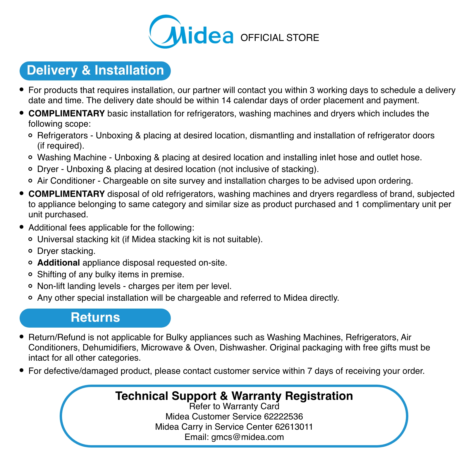 [Bulky] Midea MF200W95B Grey Front Load Washer, 9.5kg, Water Efficiency 4 Ticks
