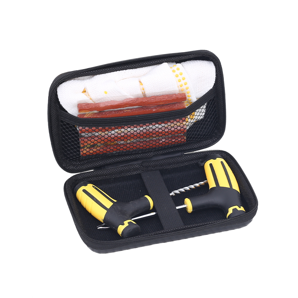 *1. Car and bike tire repair kit for emergencies include plug string, reamer, plugger, gloves, and other tools.