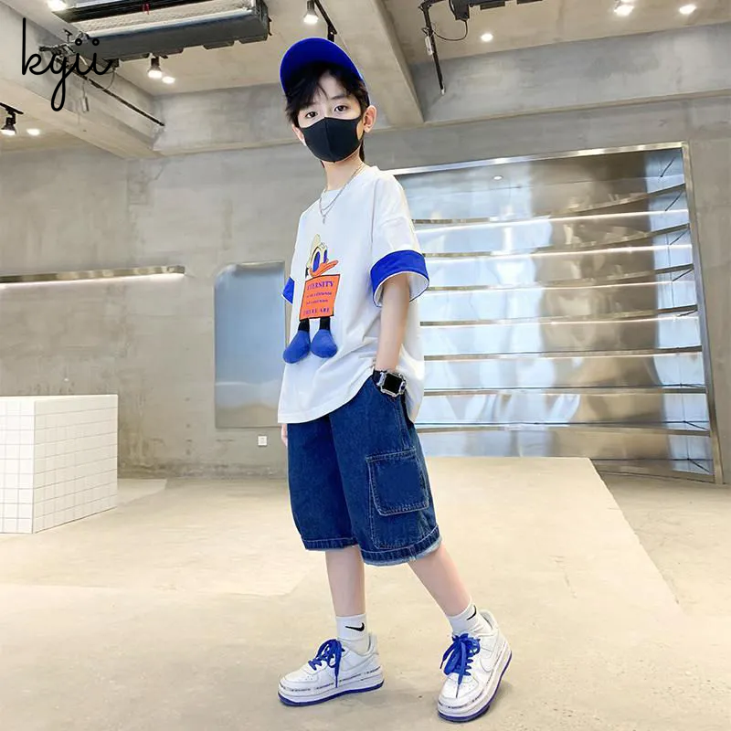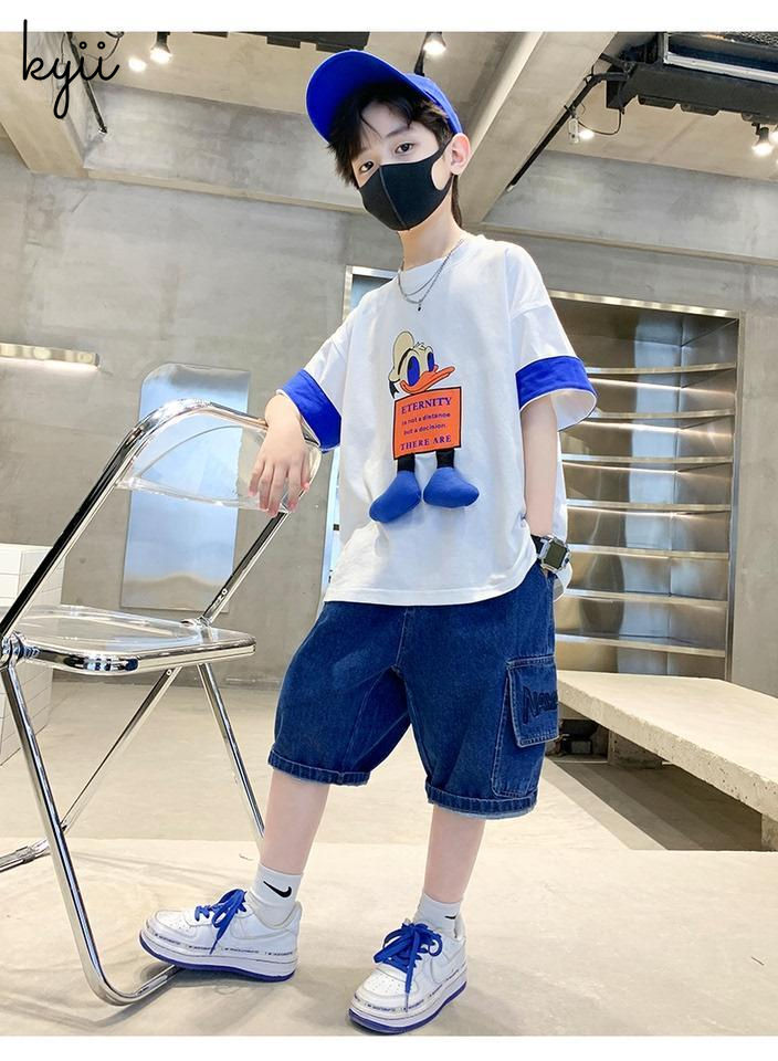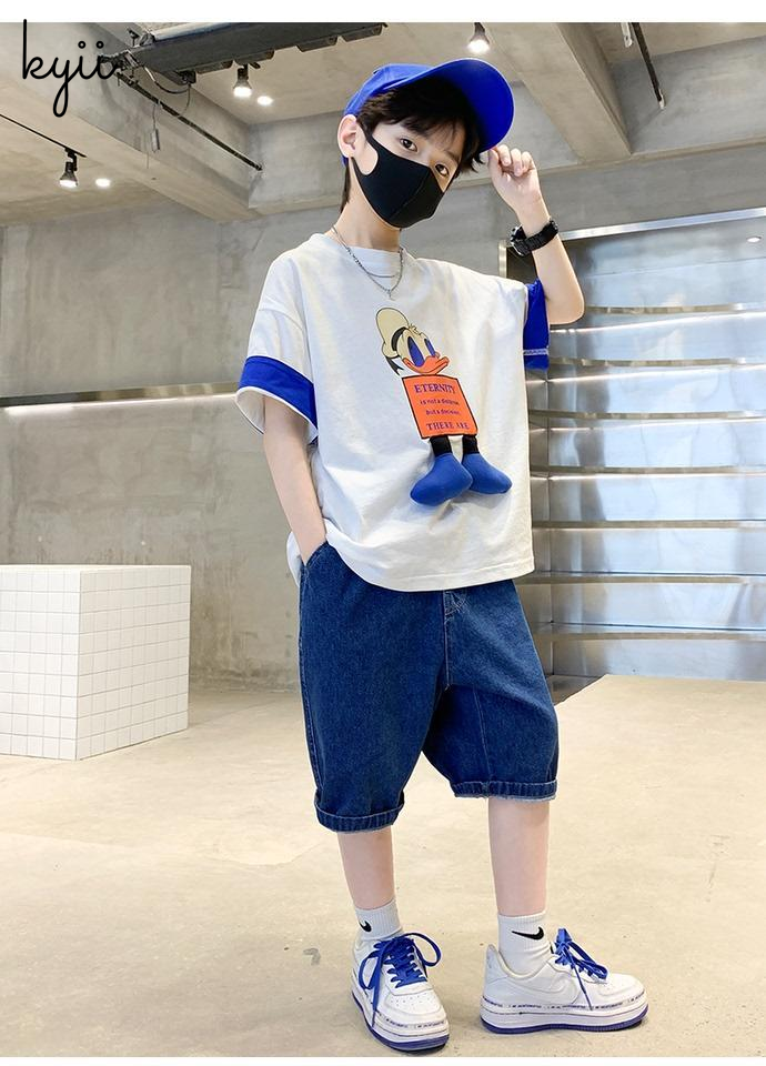 KYII Boys summer Stripe short sleeves Shirt two-piece set kyb021