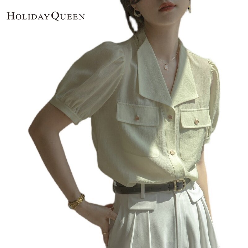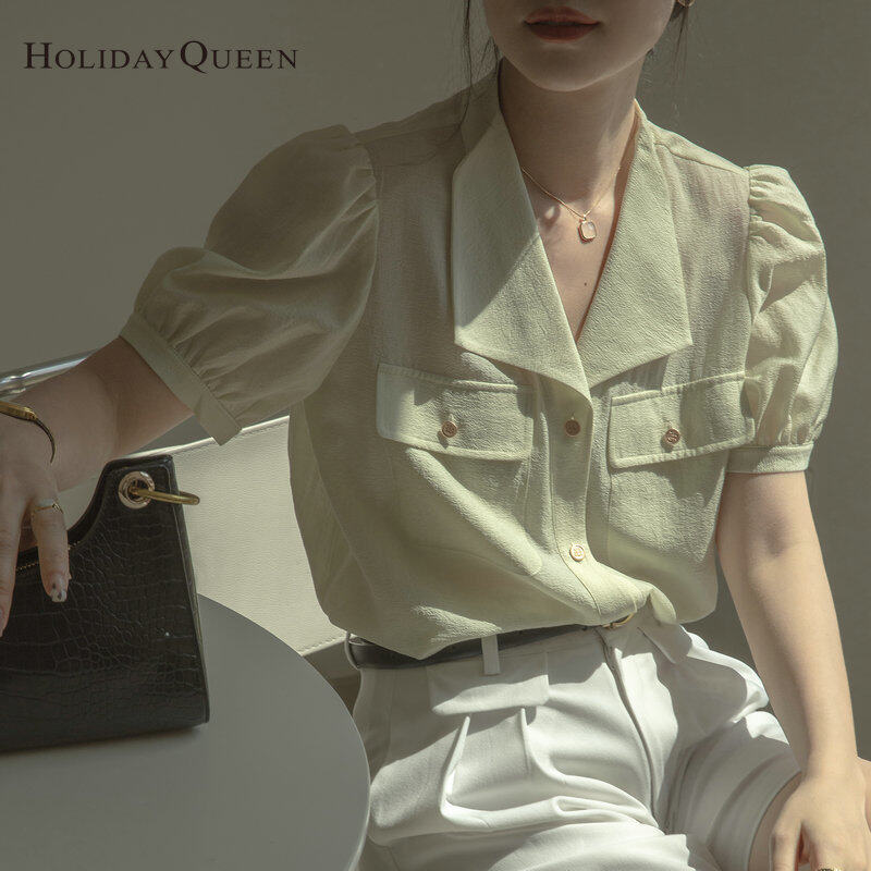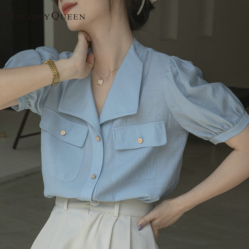 HolidayQueen Ladies Puff Sleeve Shirt 2022 Summer New Fashion French High-End Blue Top S M L XL 2XL Free Shipping HQ1302