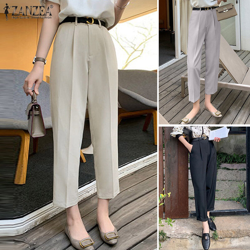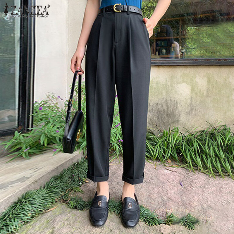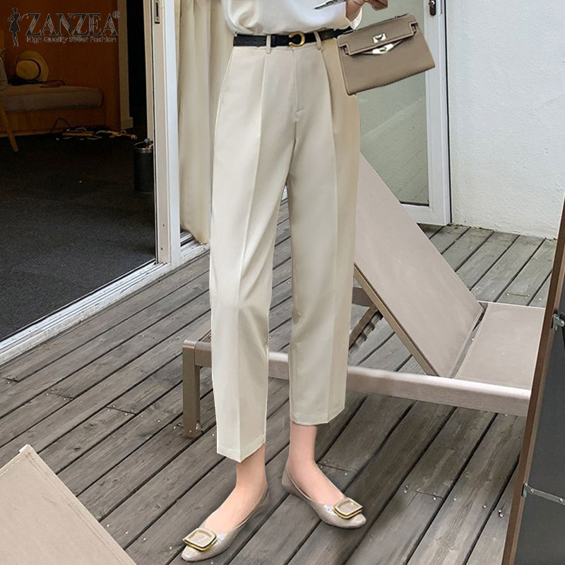 ZANZEA Korean Style Women Plain Casual Trousers Office Lady Commute Long Suit Pants Slacks