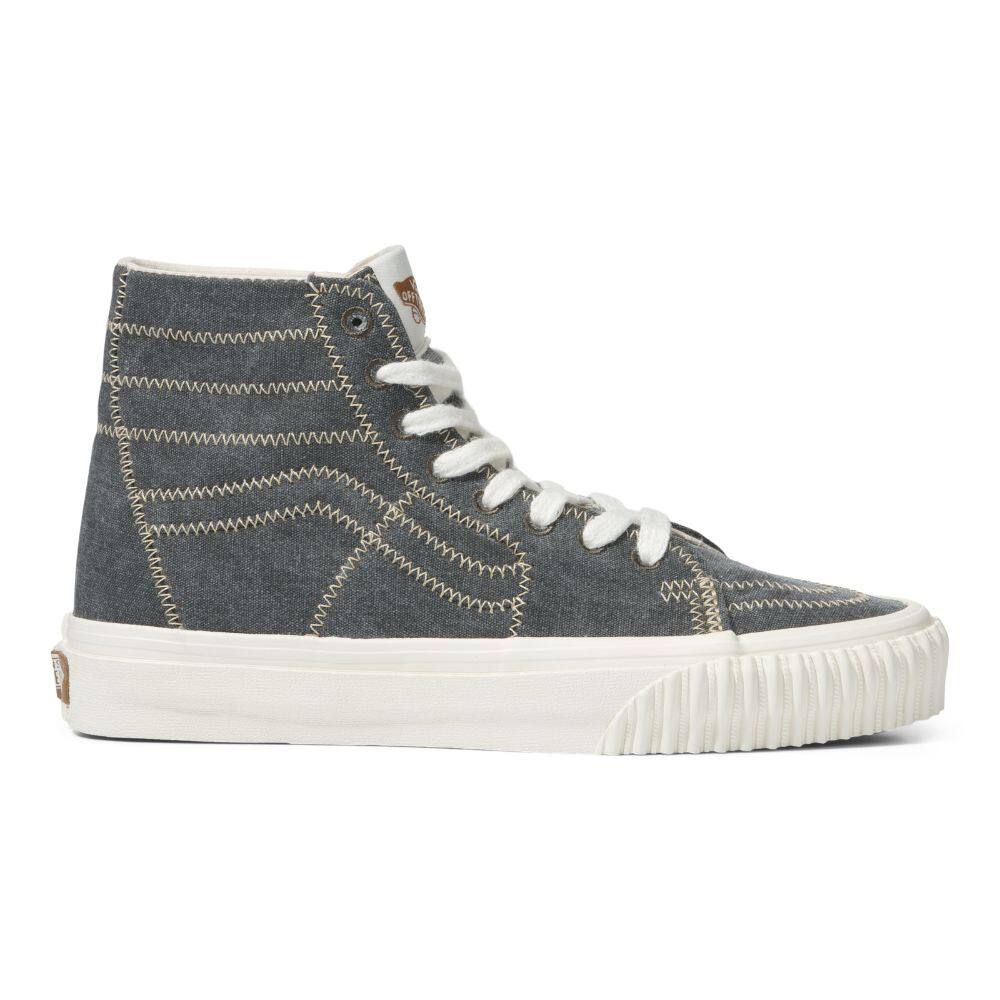The Stone Wash Sk8-Hi Tapered, a deconstructed version of the classic lace-up high top, features a more slender and fitted silhouette than the traditional Sk8-Hi. It also includes sturdy textile uppers and signature rubber waffle outsoles.