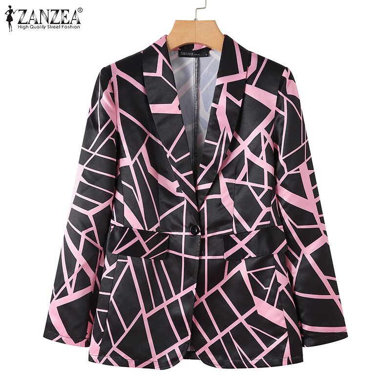 ZANZEA Women Long Sleeve Blazer Coat Lapel Collar Print Patchwork Elegant Casual Jackets #15