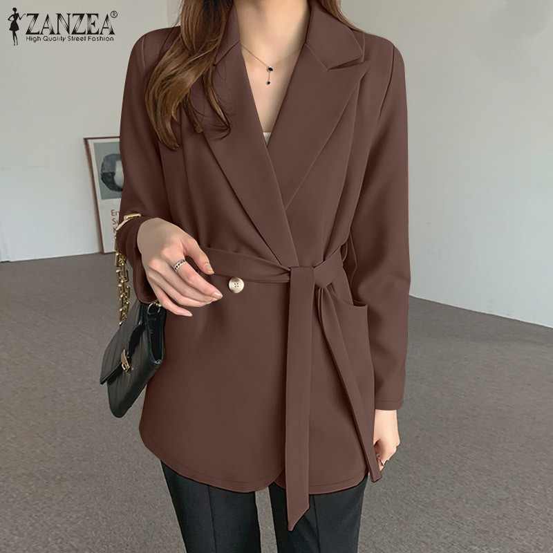 ZANZEA Womens Formal Office OL Plain Fashion Blazer Jacket Lace Up Business Overcoat #11