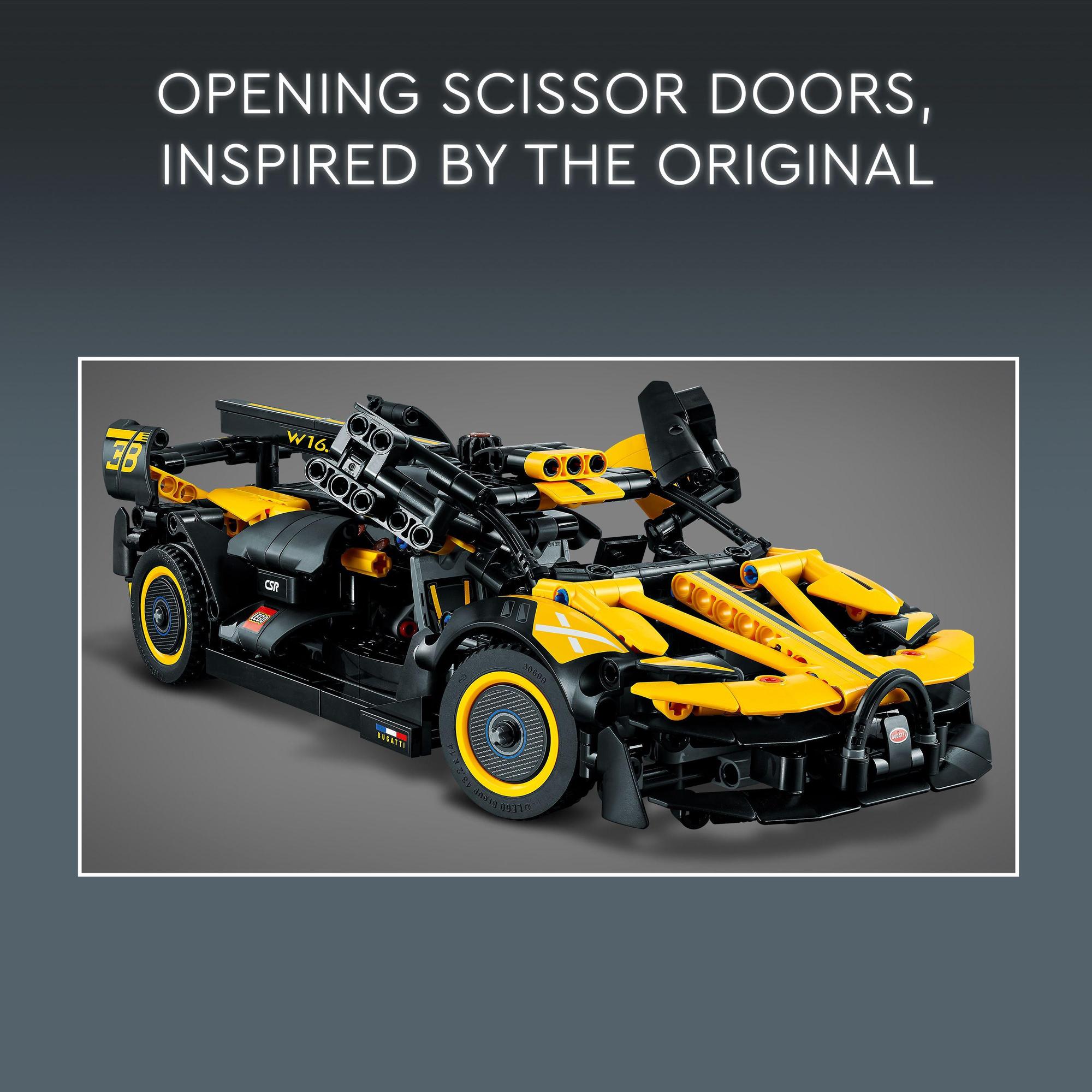 Features opening scissor doors, just like the real Bugatti Bolide.