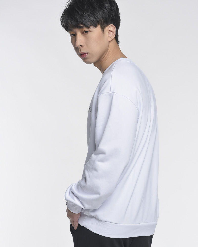 Yishion Men Oversized Solid Coloured Long Sleeve Sweatshirt with "ORIGINALTEEBOX" Logo (White)